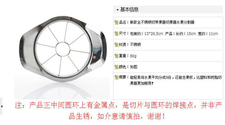 A30 factory stainless steel apple cutter cored fruit cutter fruit splitter fruit opener apple cutter