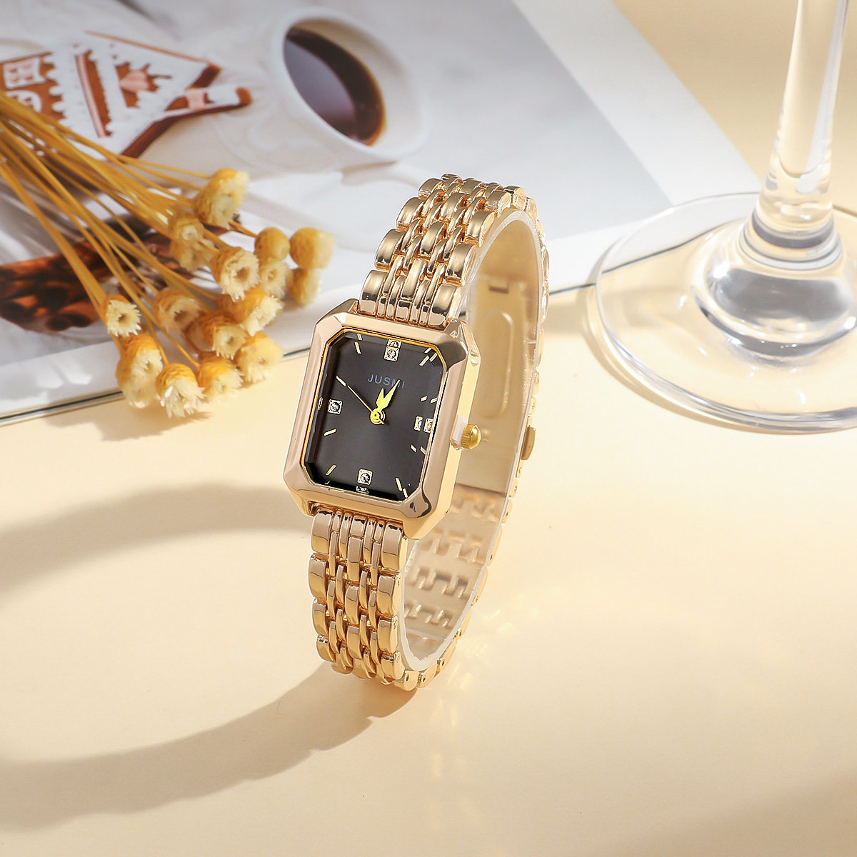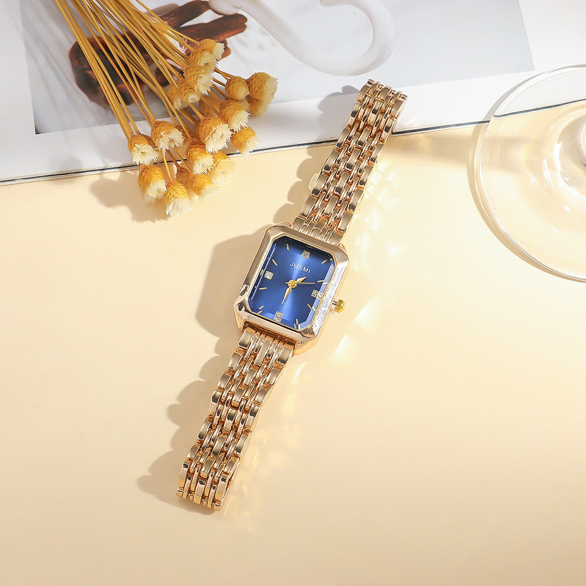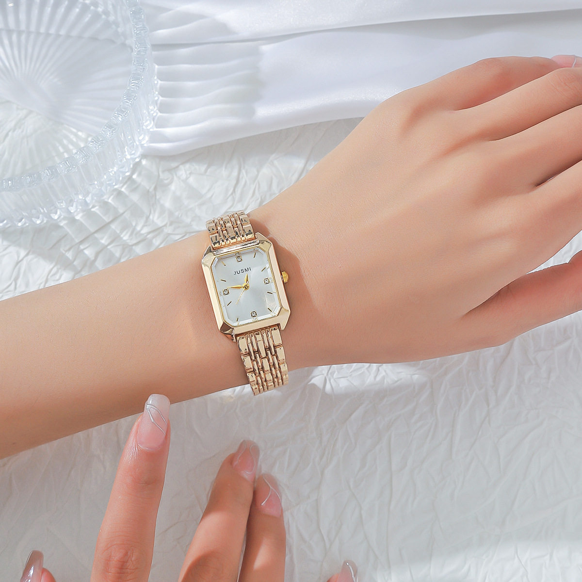 Fashionable New Square Dial Diamond Scale Women's Steel Band Quartz Watch Guilu S04442