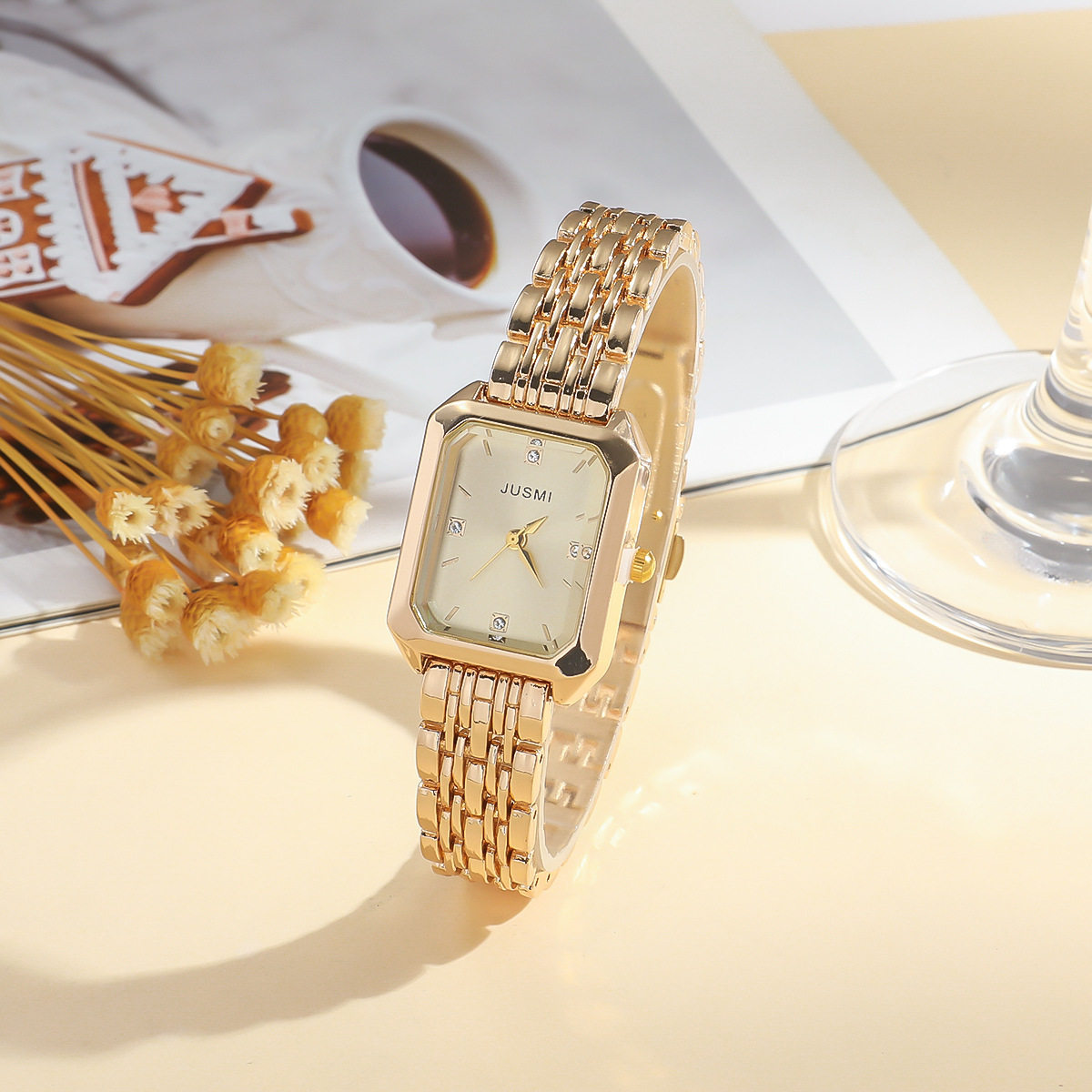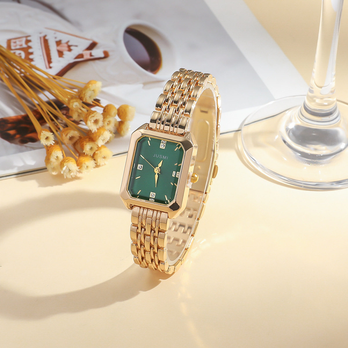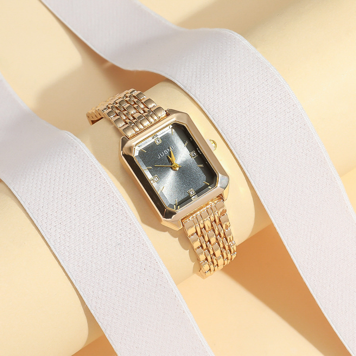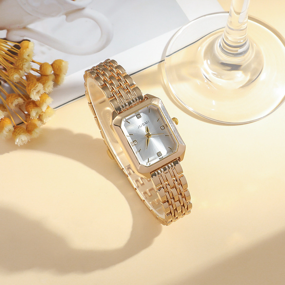 Fashionable New Square Dial Diamond Scale Women's Steel Band Quartz Watch Guilu S04442