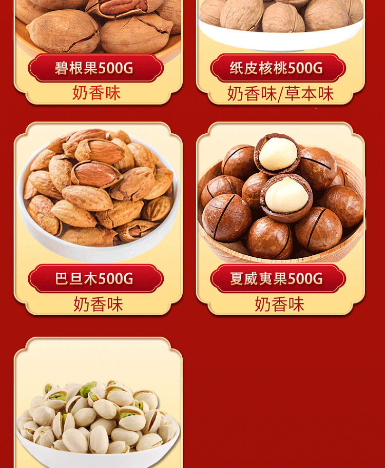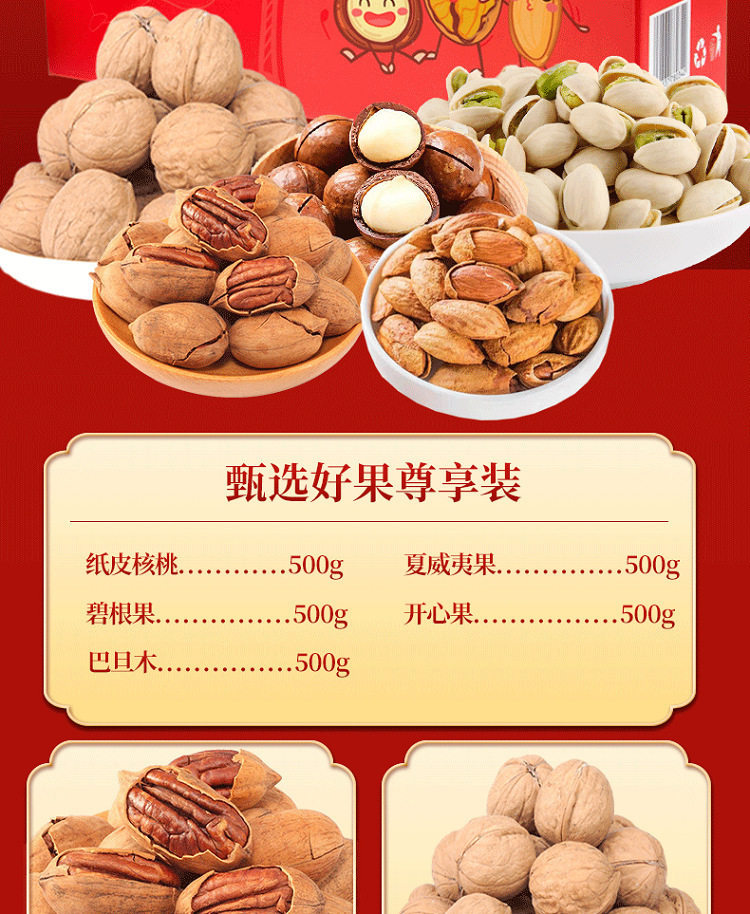 | Raw materials and ingredients | Walnuts, happy fruit, germ, hawaiian fruit, almonds np |