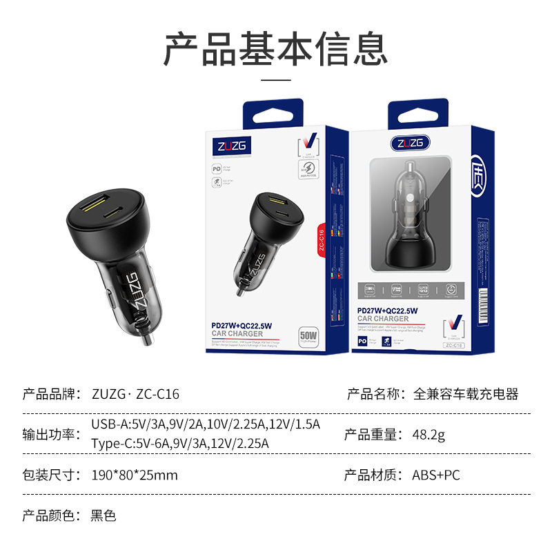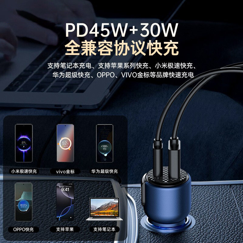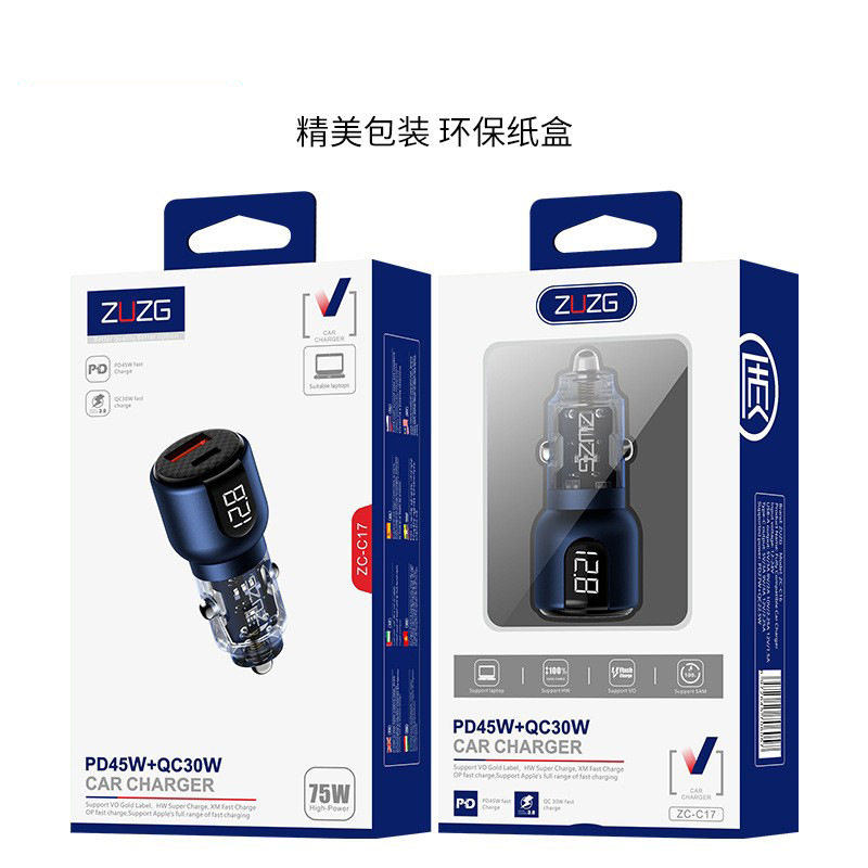 Zuzg Pd45W+Qc30W Car Charger Full Protocol Super Fast Charging Flash Charging Fully Compatible Car Charger