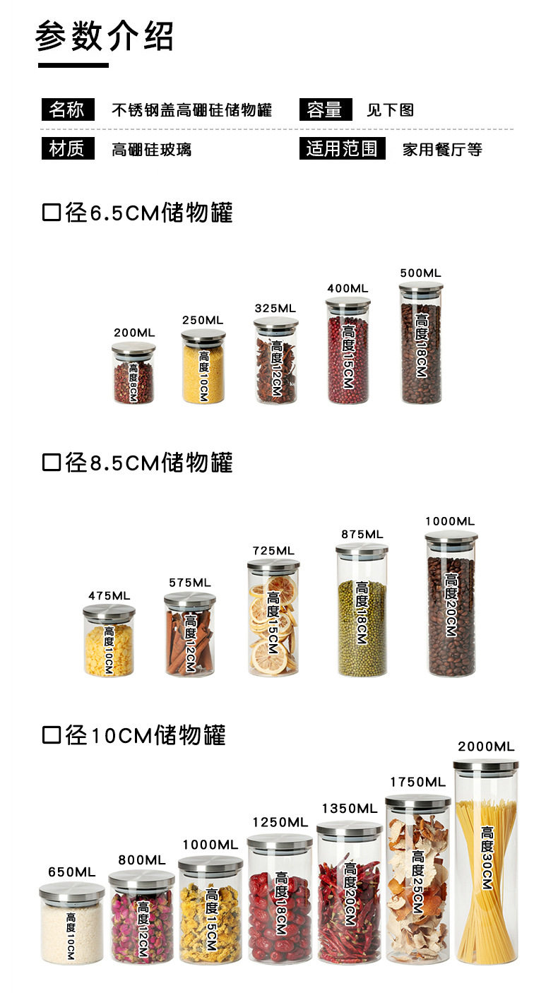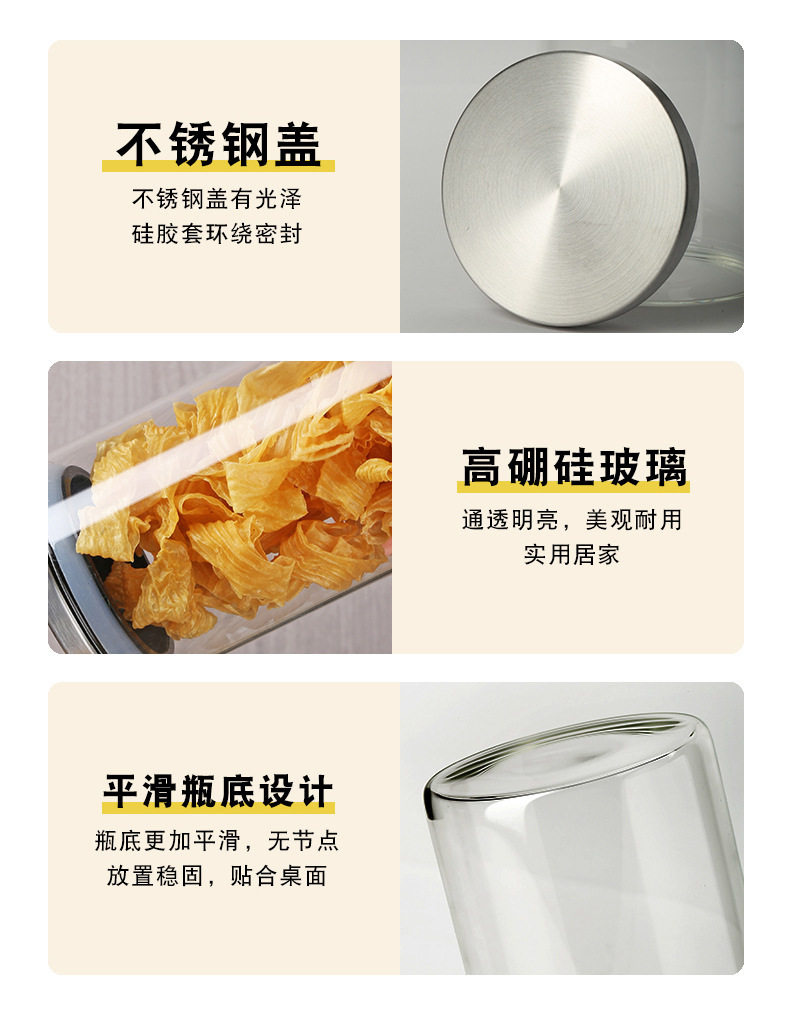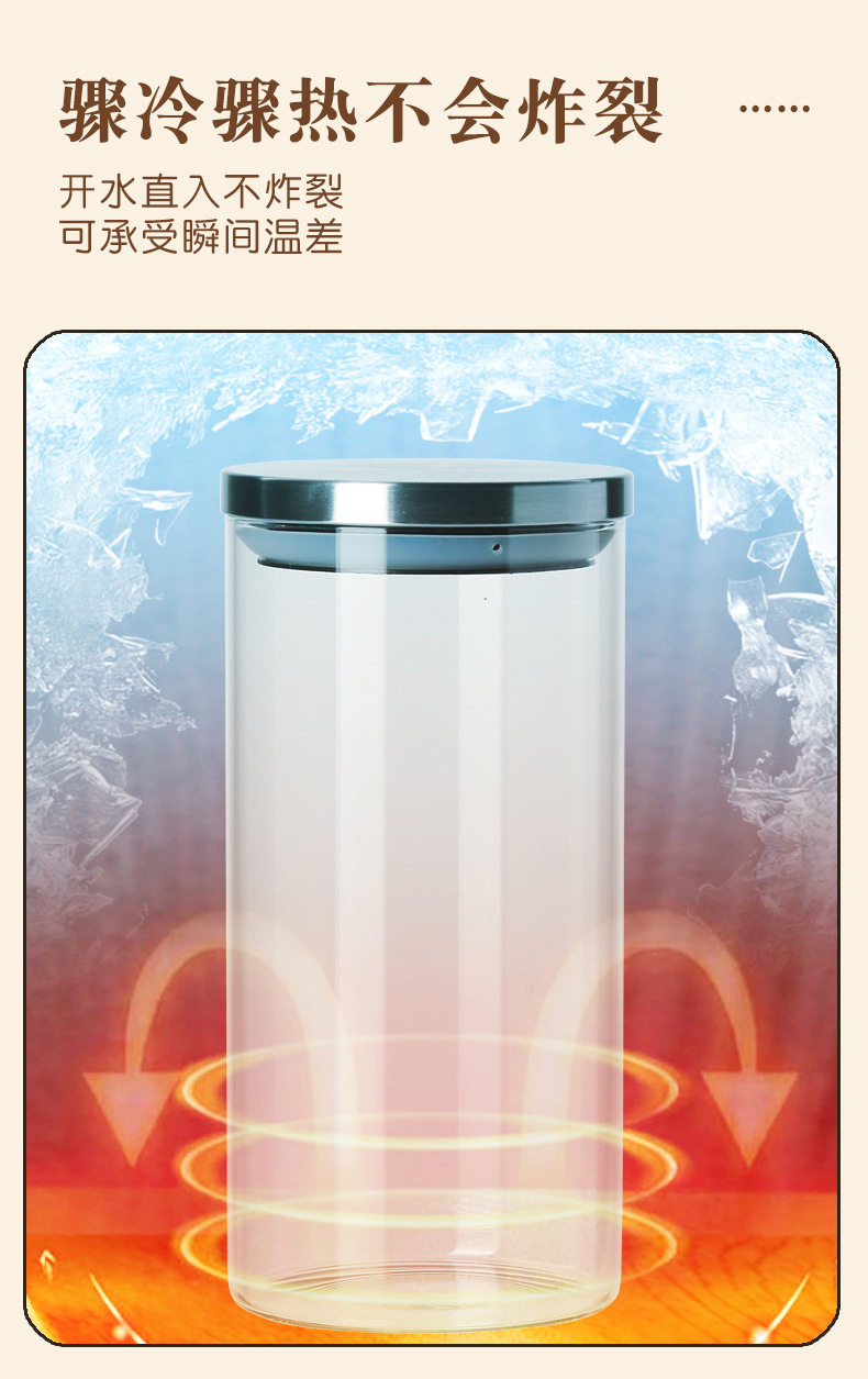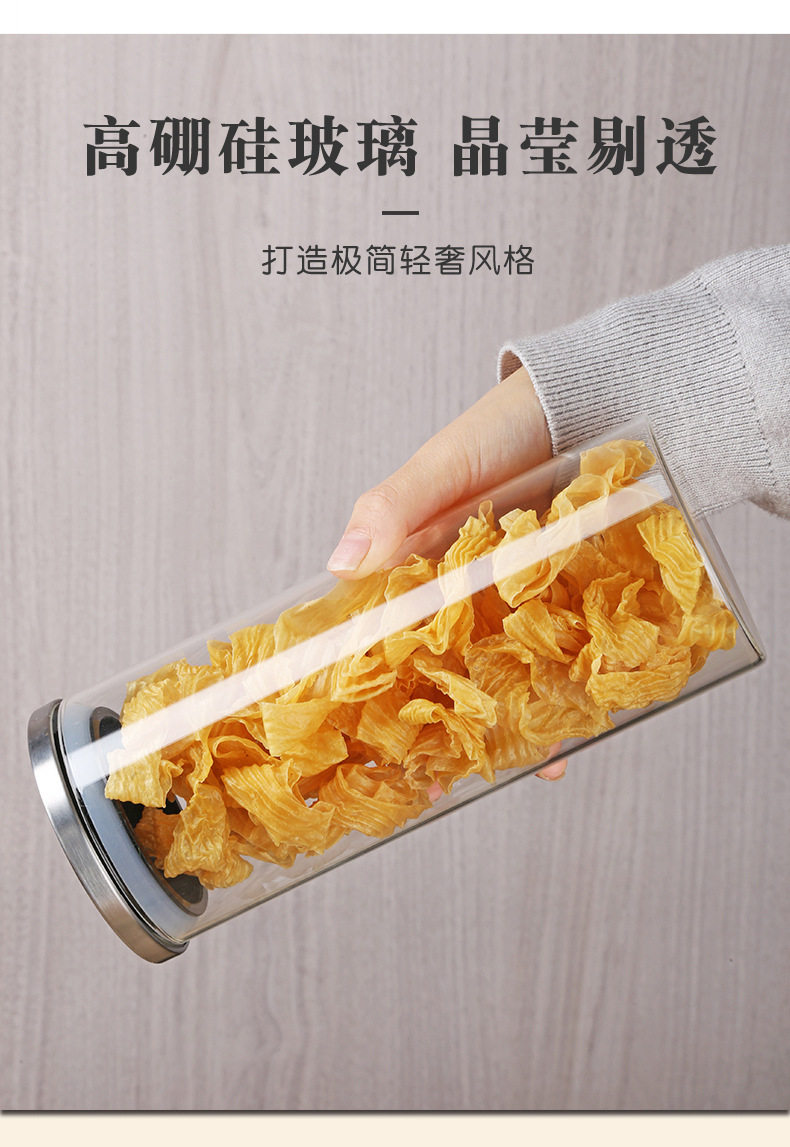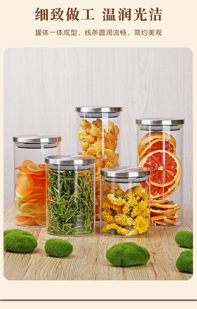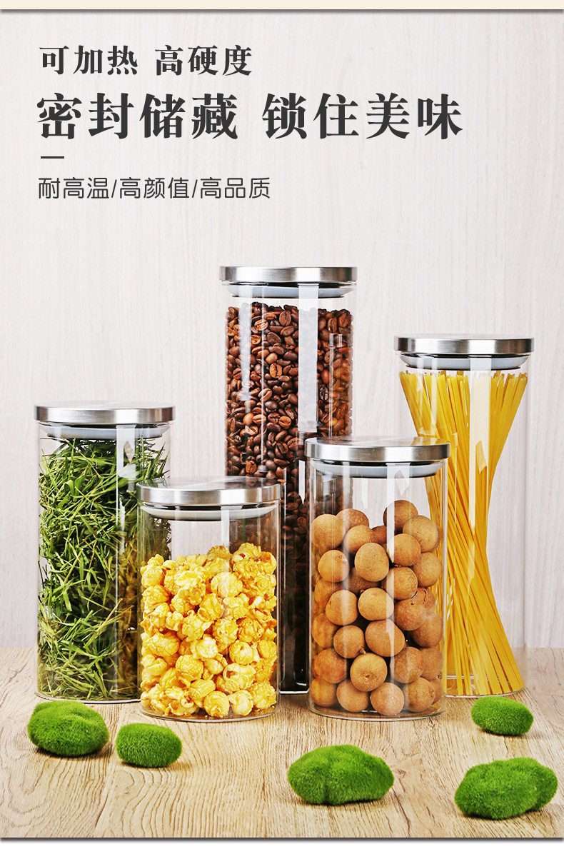 Glass Storage Jar Glass Jar Kitchen Sealed Storage Jar Stainless Steel Cover Borosilicate Transparent Storage Jar with Lid