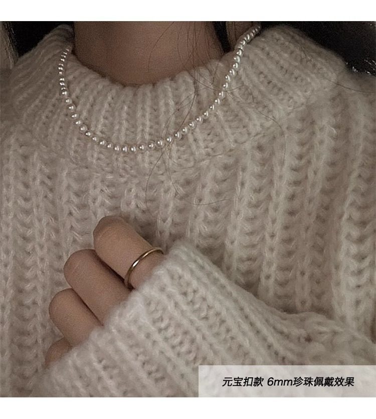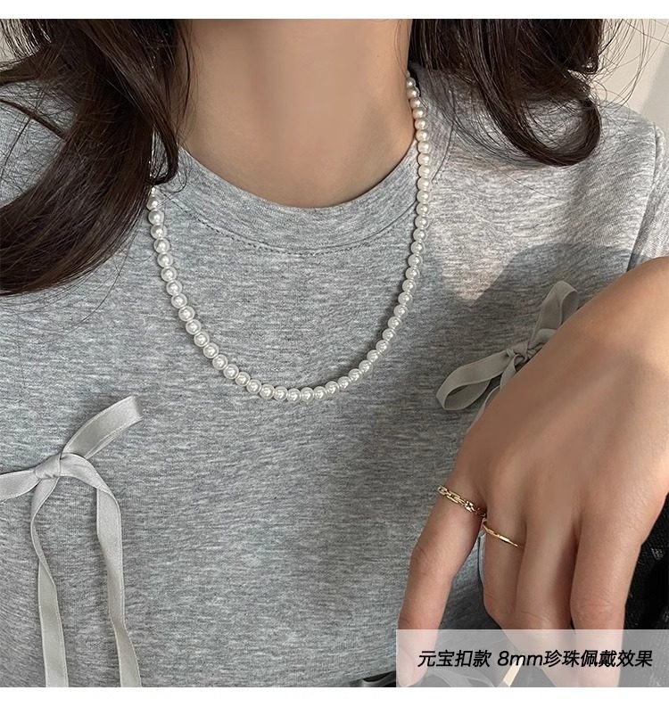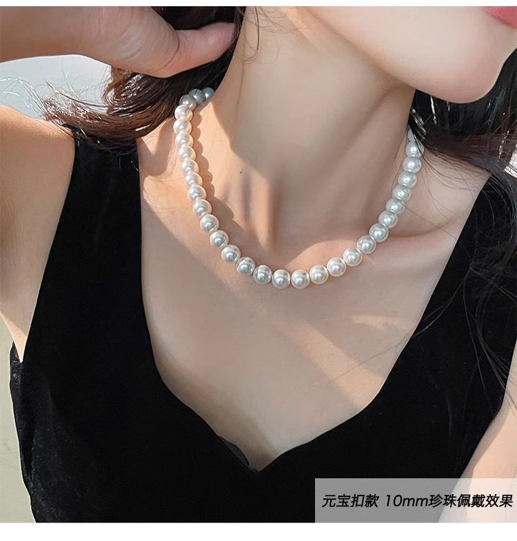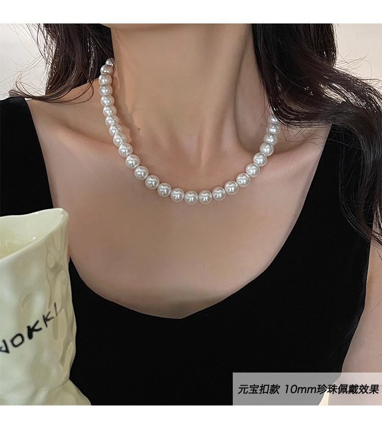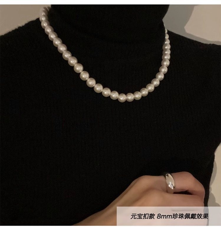 Round 650 Pearl White Shijia Pearl Necklace Titanium Steel Yuanbao Buckle Accessories Women's Light Luxury Niche Collarbone Chain