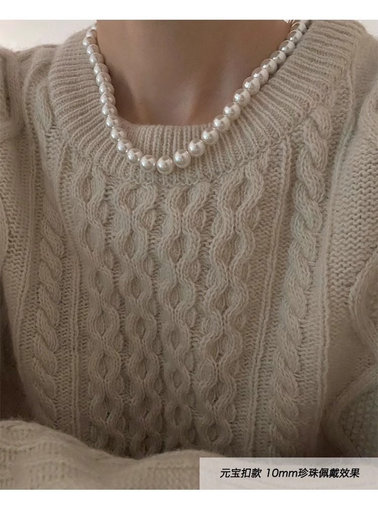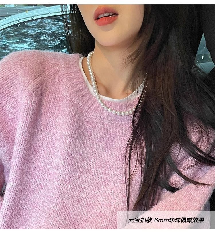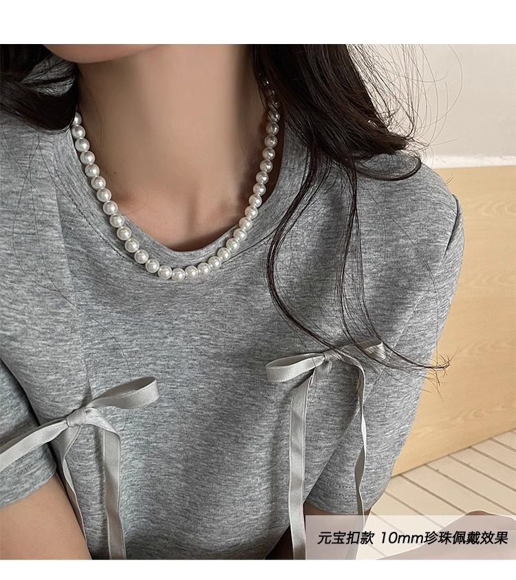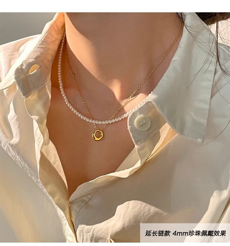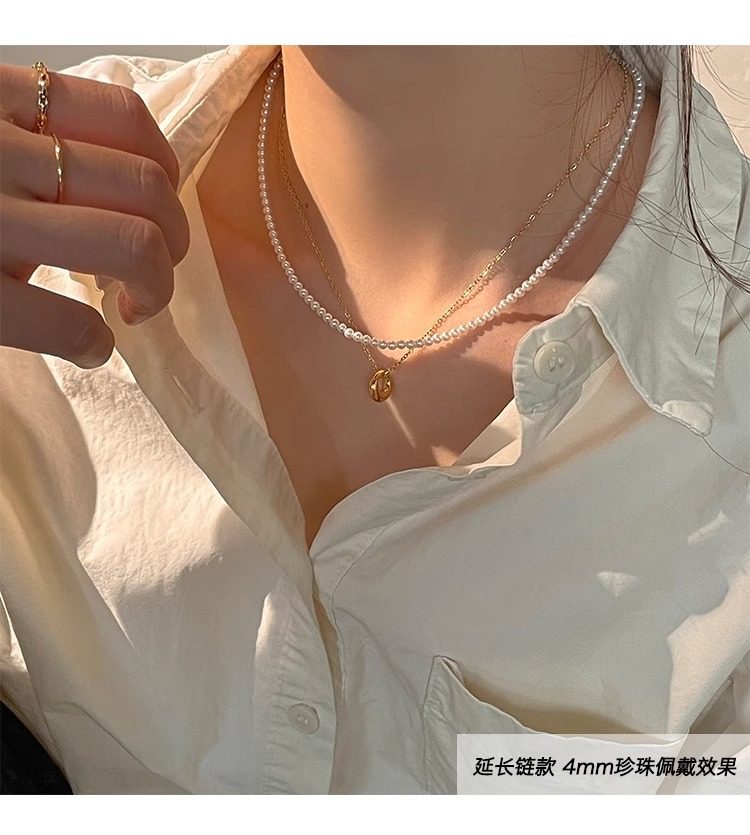 Round 650 Pearl White Shijia Pearl Necklace Titanium Steel Yuanbao Buckle Accessories Women's Light Luxury Niche Collarbone Chain