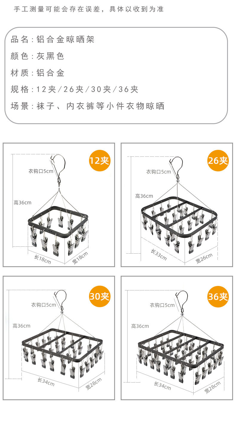Aluminum alloy socks drying rack multi-clip socks drying rack balcony drying rack multifunctional underwear pants rack socks clip