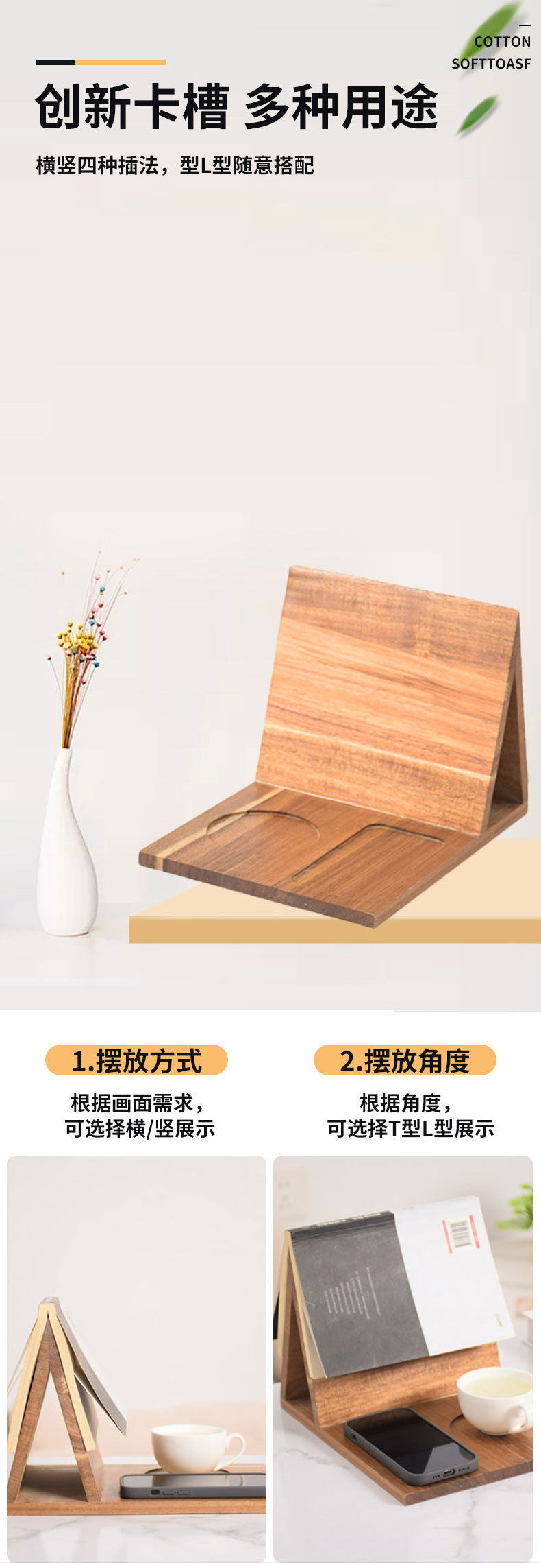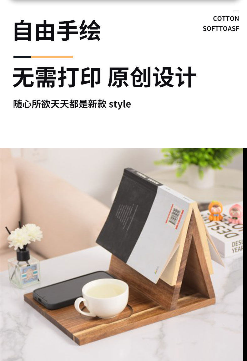 Cross-border New Solid Wood Triangle Book Stand Acacia Wood with Coaster Bracket Reading Rack Home Bedroom Desktop Bookshelf