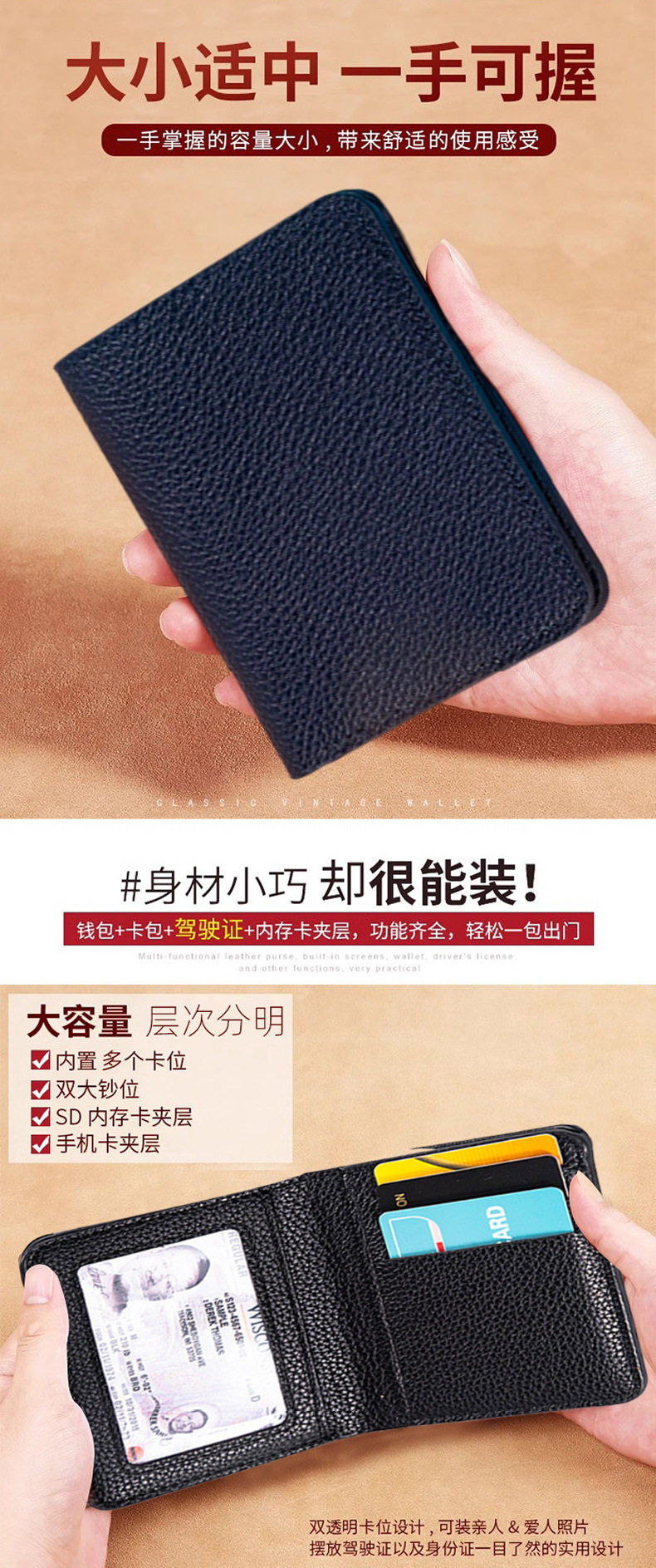 Cross-Border Hot Selling Ultra-Light Pu Multi-Functional Small Wallet Rfid Anti-Magnetic Wallet Men and Women Fashion Card Holder Card Holder