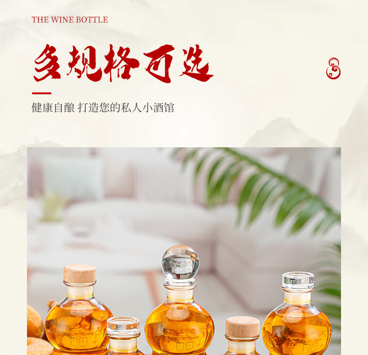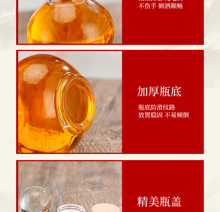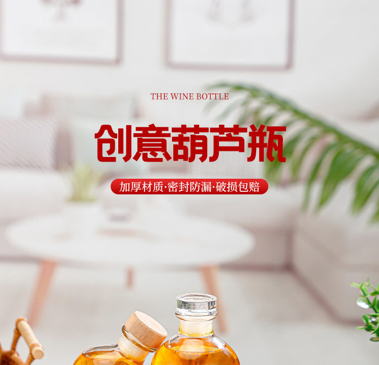Ginseng fruit wine bottled milk tea cold extraction bottle sealed sparkling wine glass bottle net red gourd glass bottle