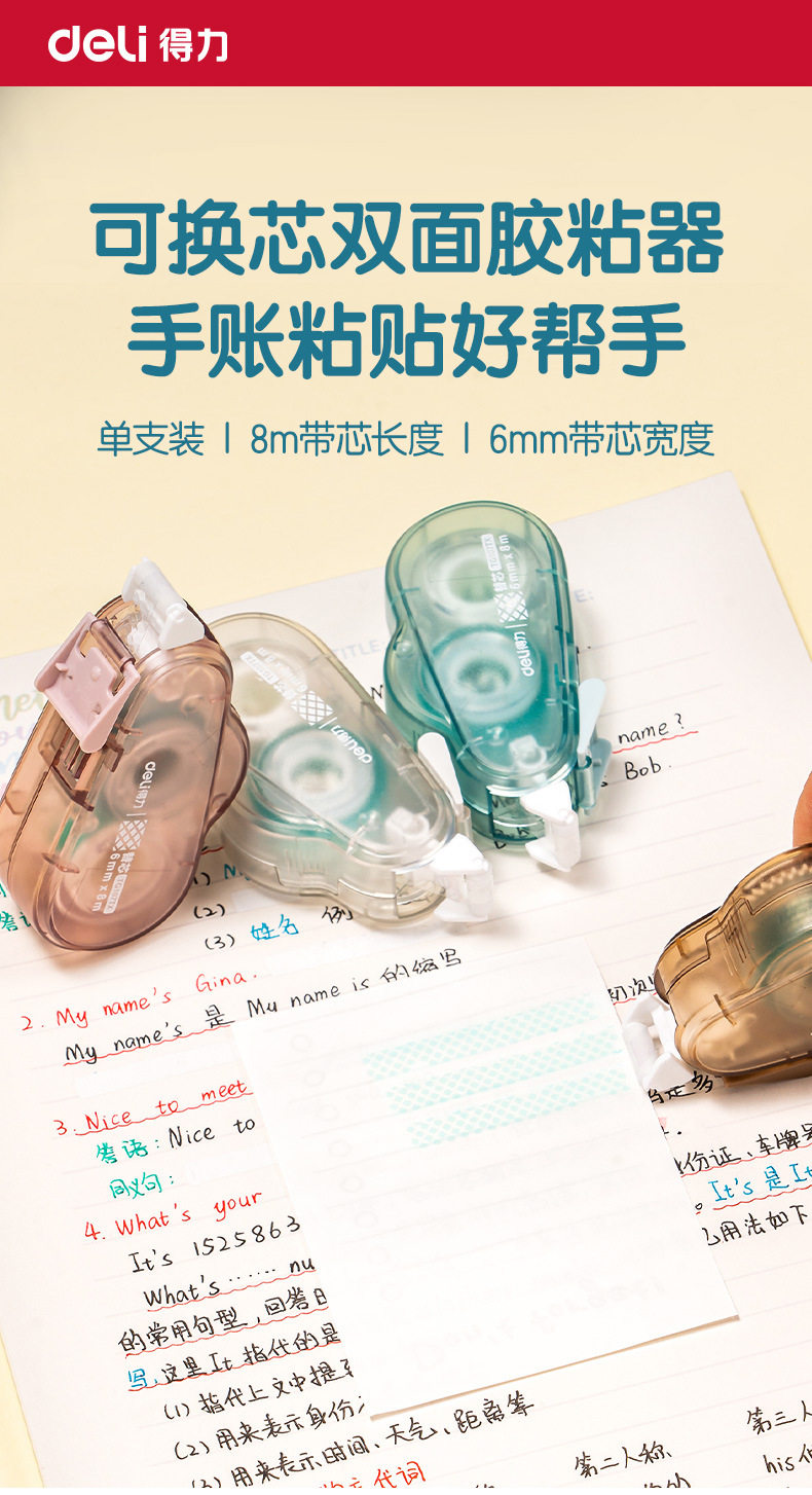 Deli TG107 double-sided adhesive high viscosity strong dot adhesive double-sided adhesive high color value can be replaced for core students