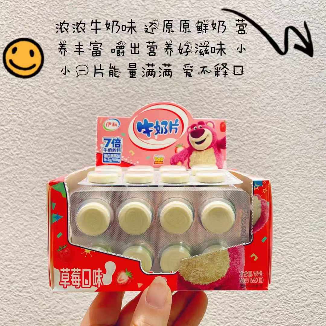 Yi Li Milk Tablets Whole Box Ten Pieces 160g Milk Tablets Candy Wholesale Whole Box 12 Boxes Original Strawberry Flavor