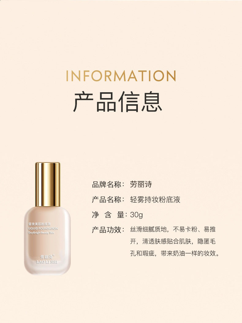 | Color classification | Liquid foundation [rulishi day and night skin beauty-natural color] |
