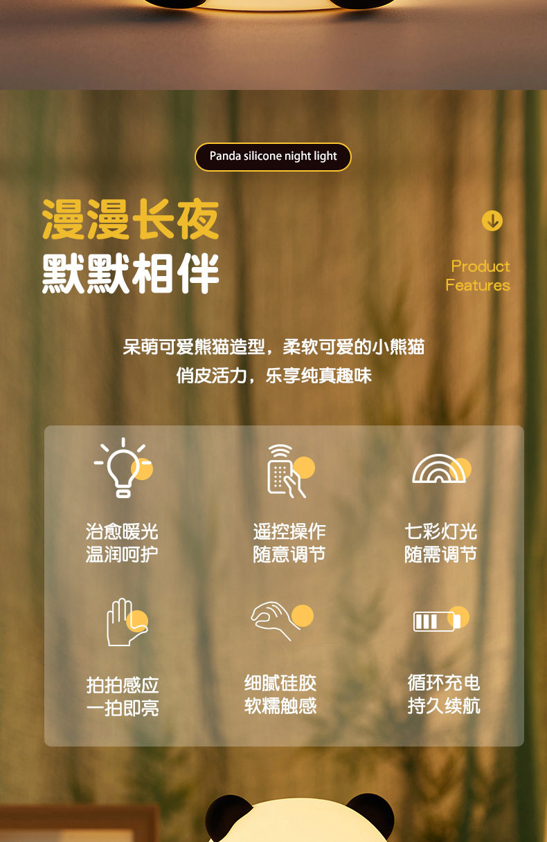 | Light color | Sitting and standing panda pat lamp [rechargeable pat model],Sitting and standing panda pat lamp [rechargeable remote control model],Sitting and standing panda pat lamp [rechargeable pat scarf] |