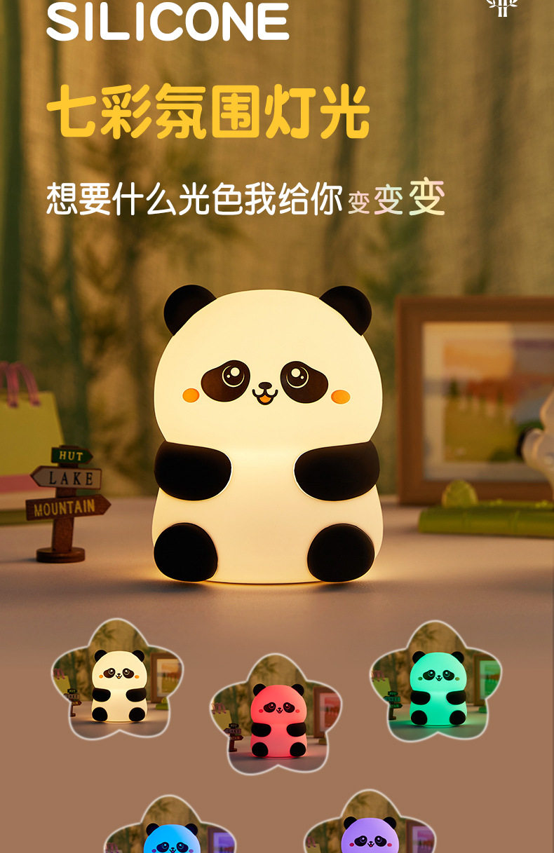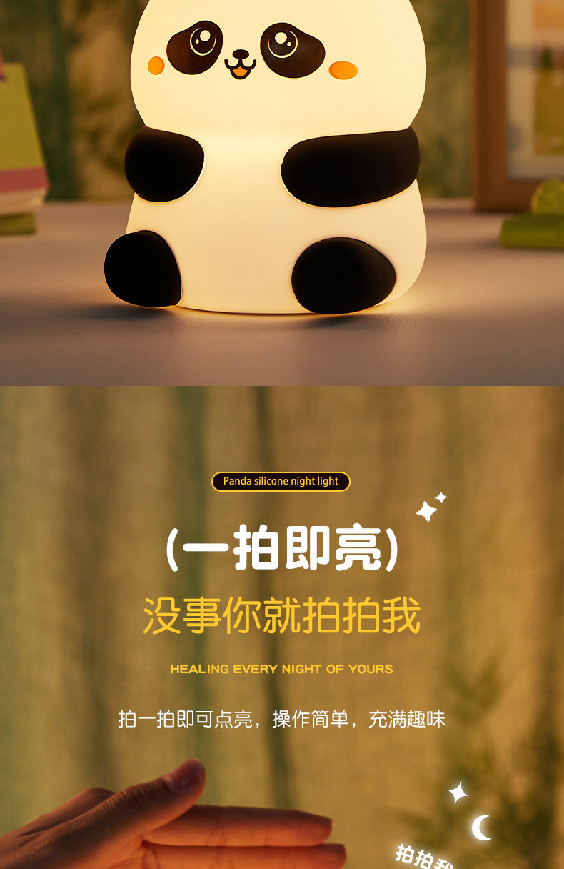 Panda Pat Light Colorful Rechargeable USB Pat Light Night Light Cartoon Silicone Night Light Gift Customization