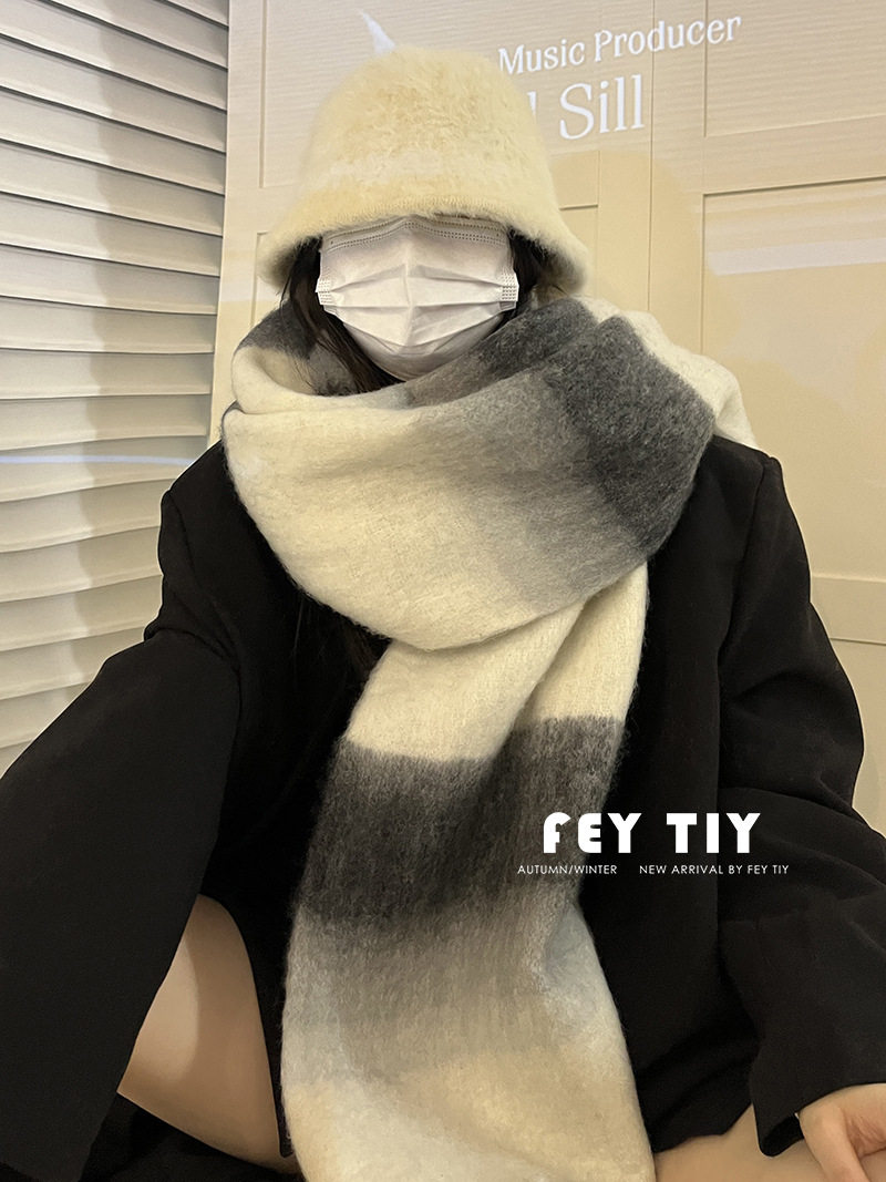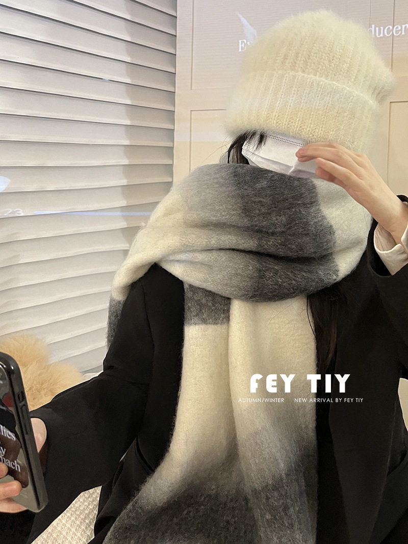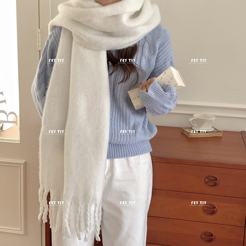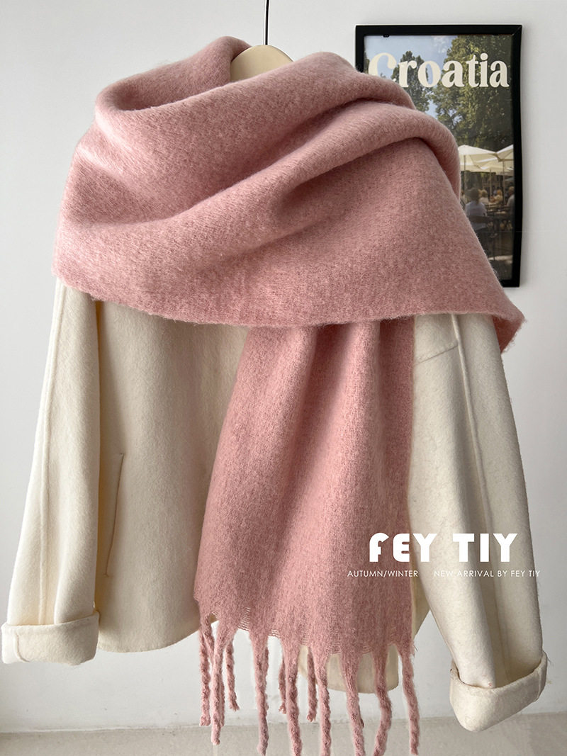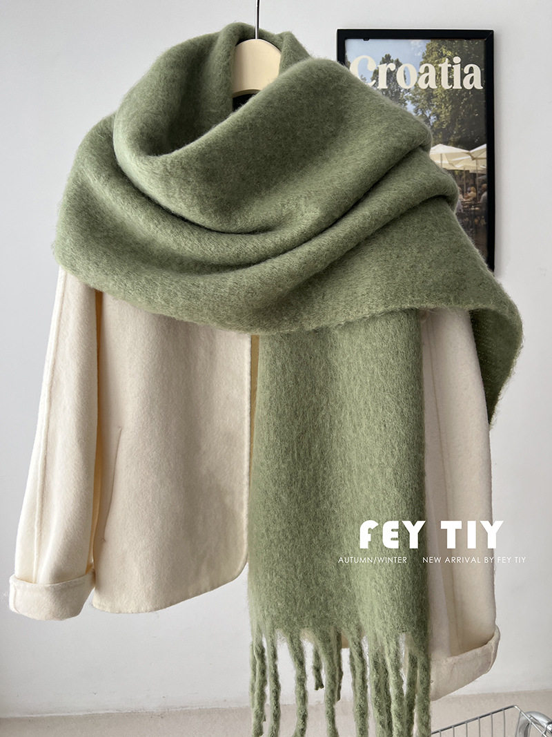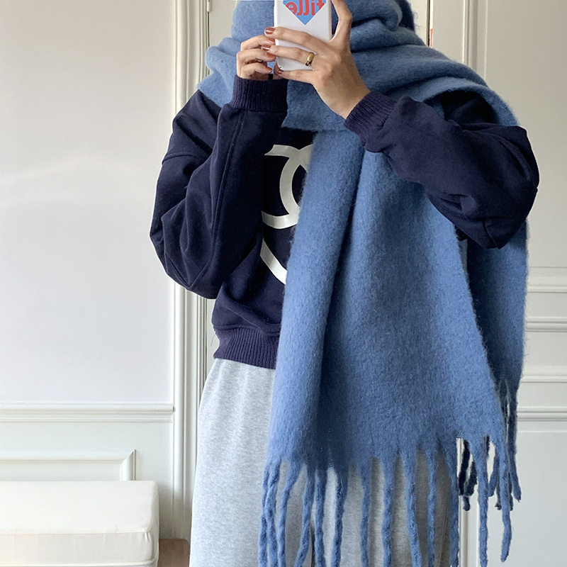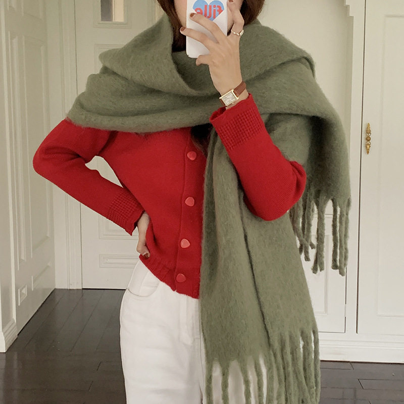 Big scarf that can sink your face in retro solid color mohair scarf shawl lovers all-match winter warmth