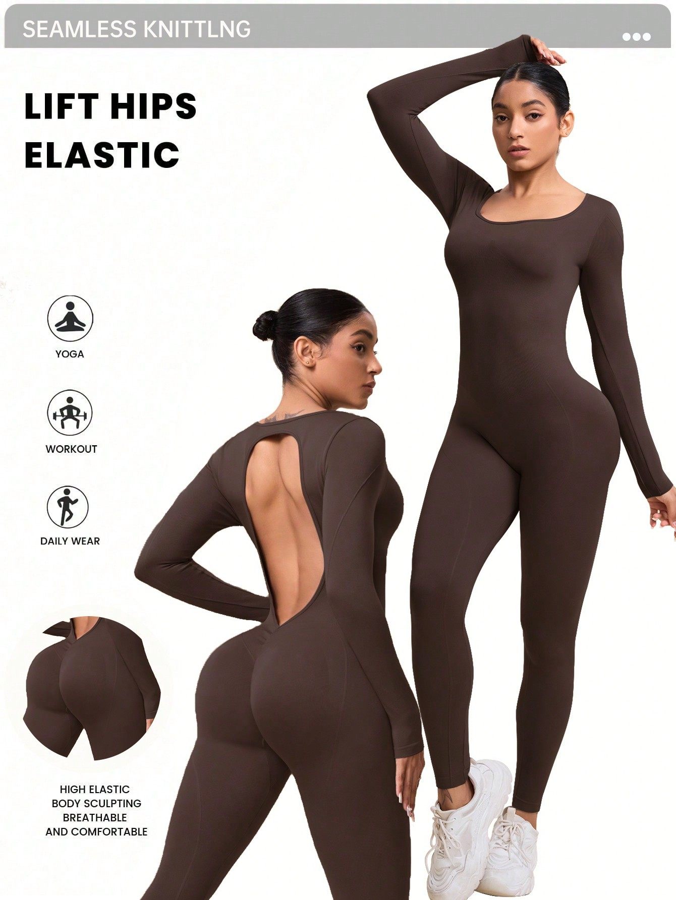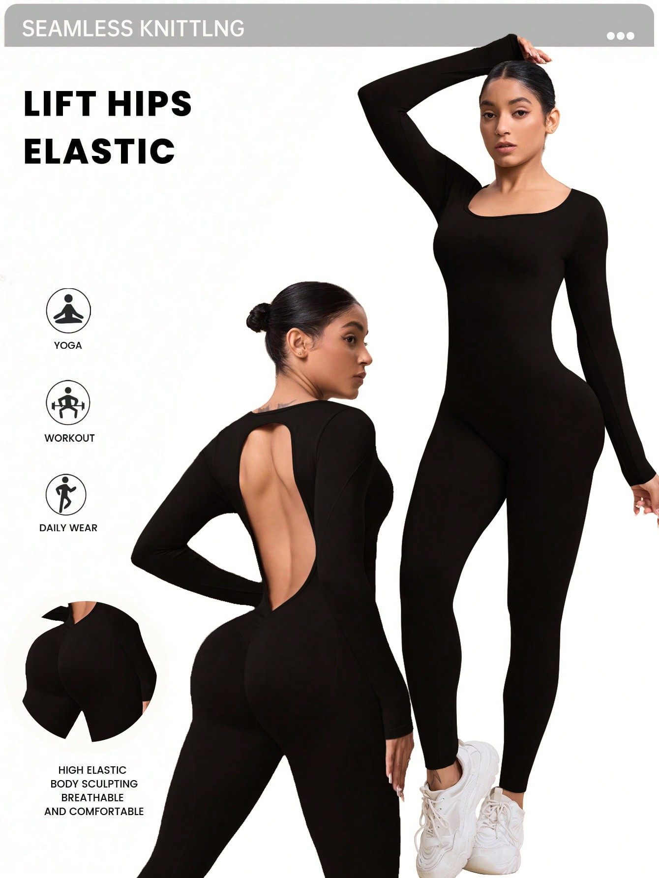 European and American Cross-Border Popular Moisture-Wicking Seamless Backless High-Elastic Tight-Fitting Sports Yoga Fitness Suit Jumpsuit