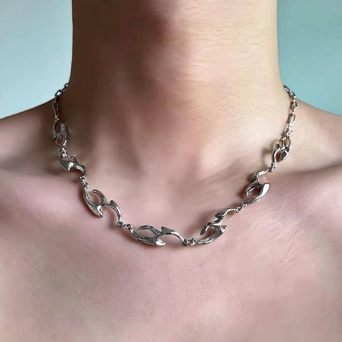 Irregular Shaped Metal Necklace Street Hip Hop Trendy Men's and Women's Niche Design High-grade Clavicle Chain Necklace Chain