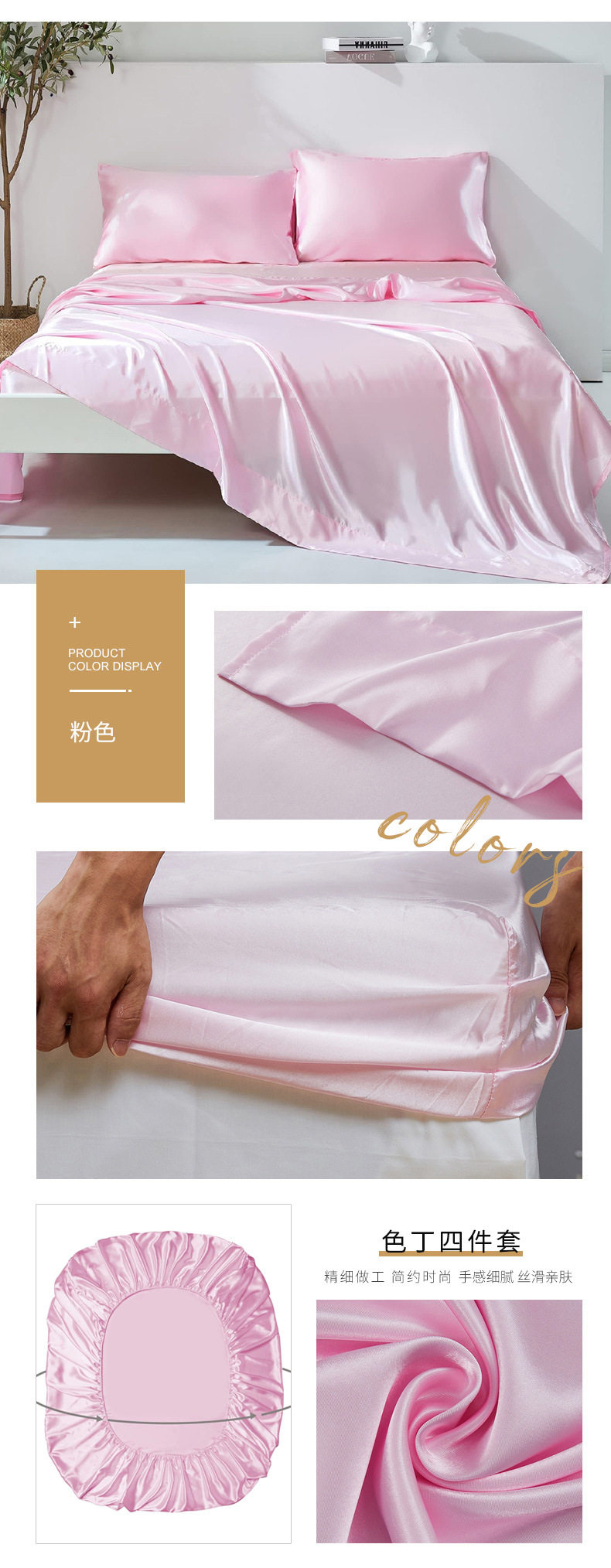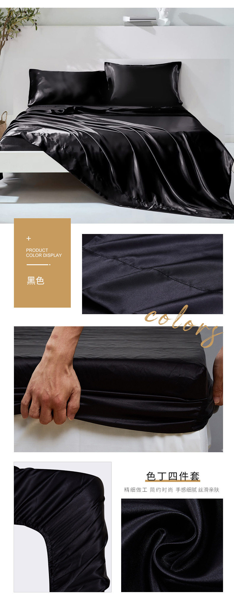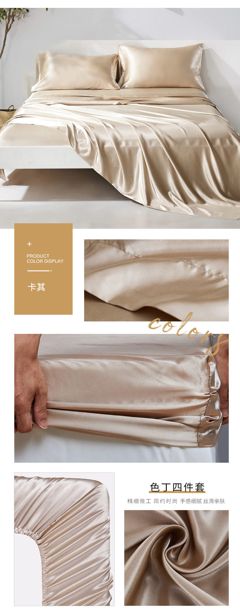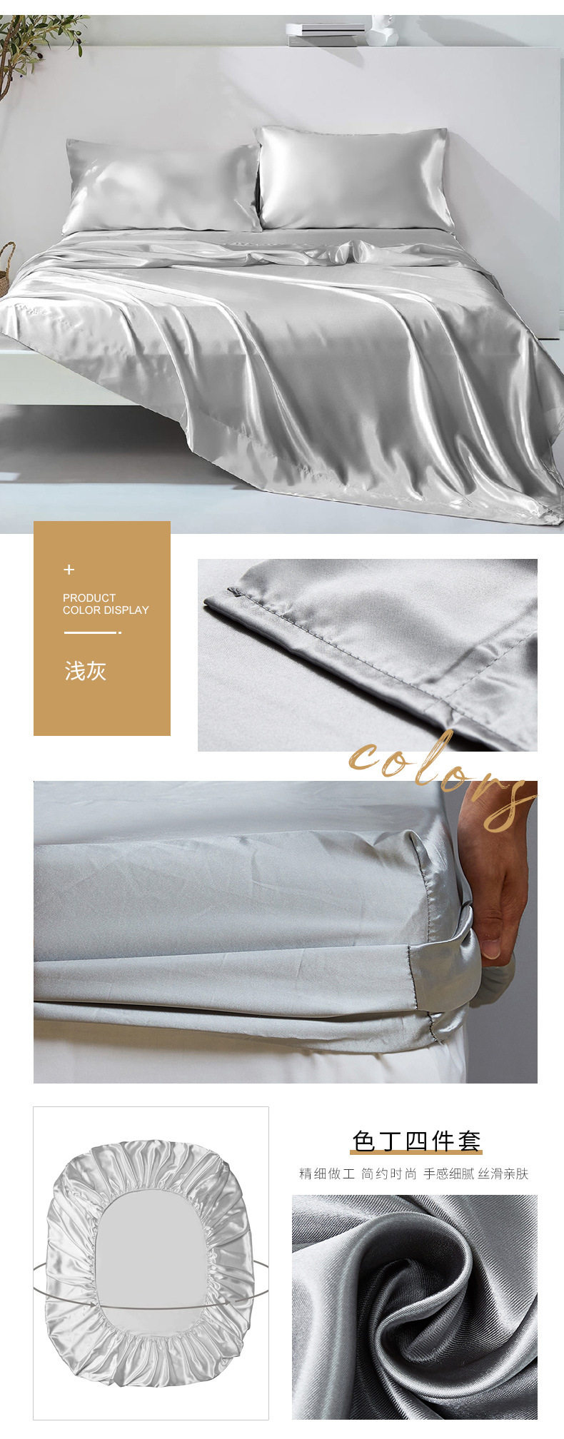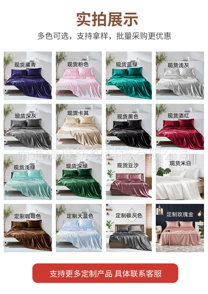 Amazon wish satin bed sheets four-piece satin satin satin fabric bedding pillowcase set wholesale
