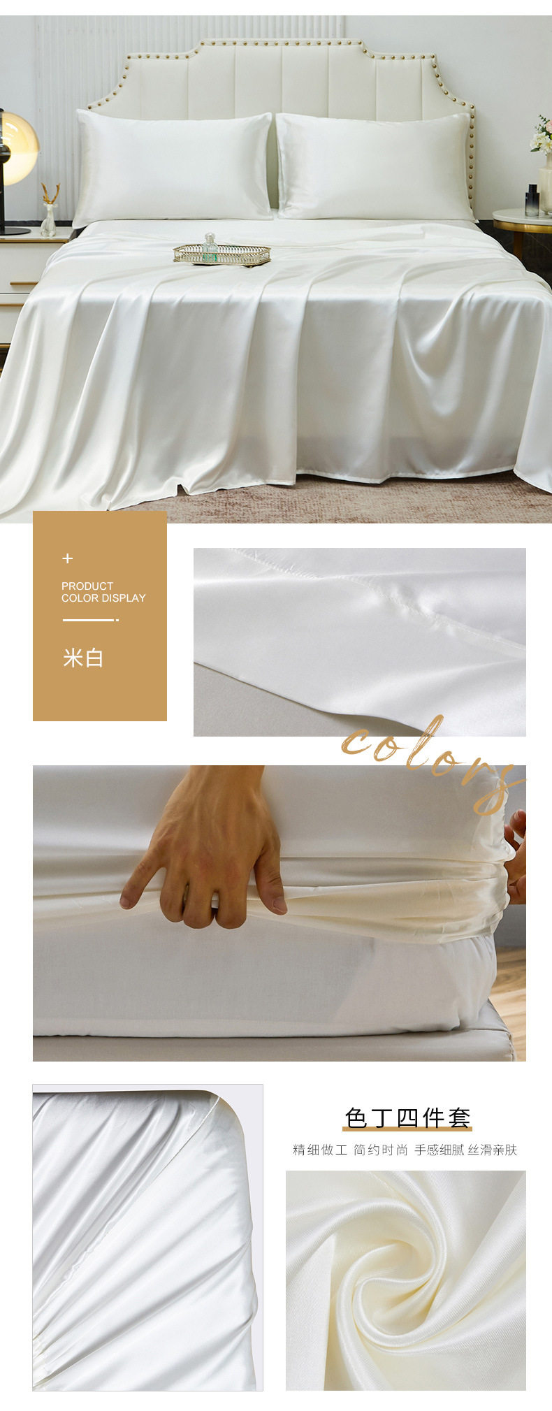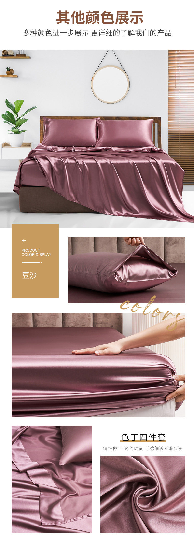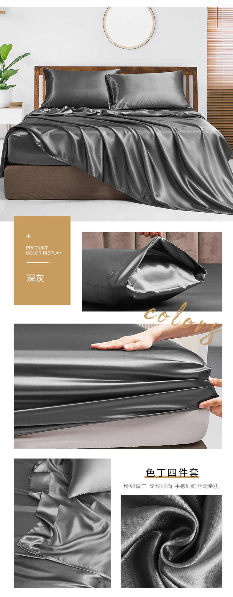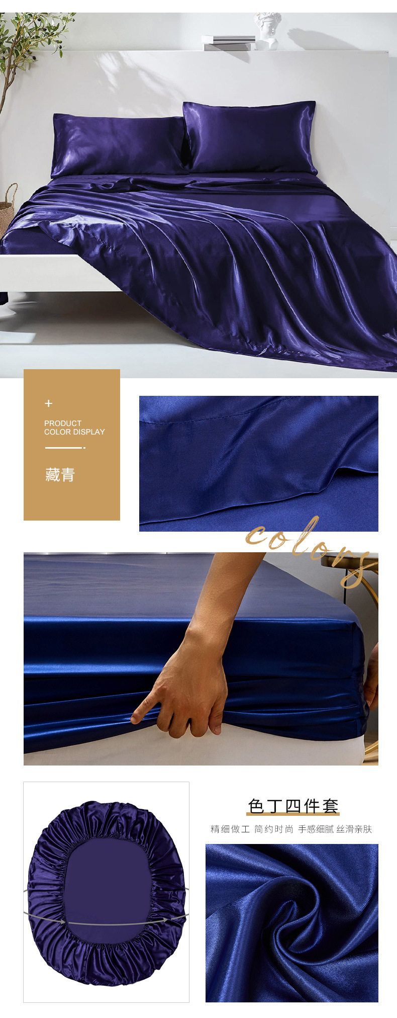 Amazon wish satin bed sheets four-piece satin satin satin fabric bedding pillowcase set wholesale
