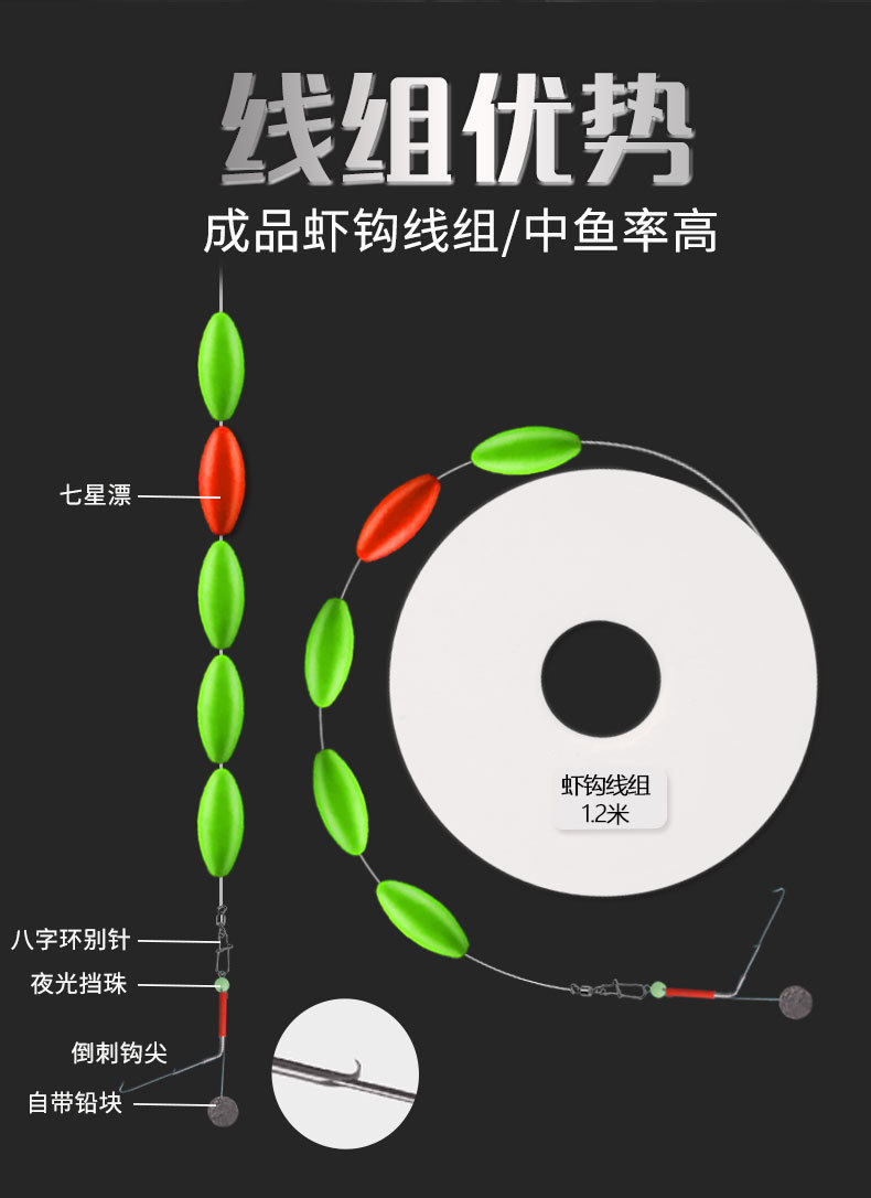 Finished Shrimp Hook Special Line Group Qixingpiao Shrimp Hook Line Group Green Shrimp Grass Shrimp Crayfish Rocker Shrimp Fishing Shrimp Artifact