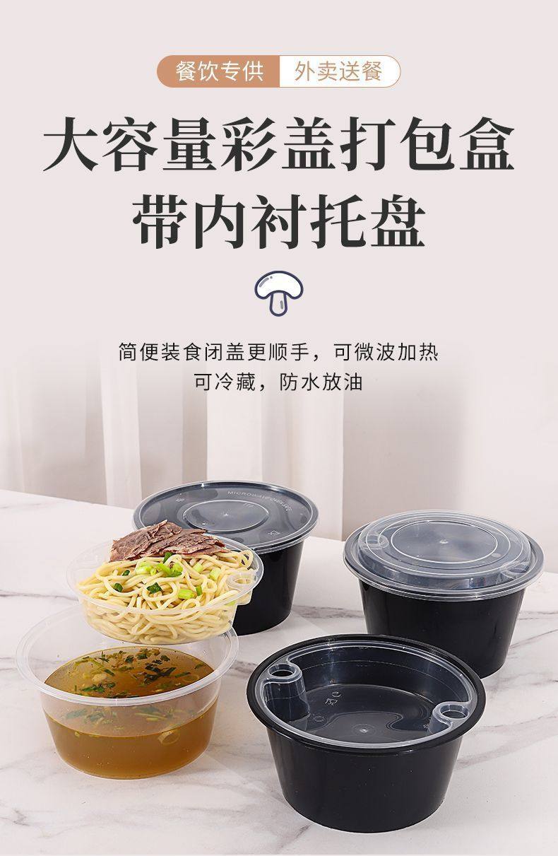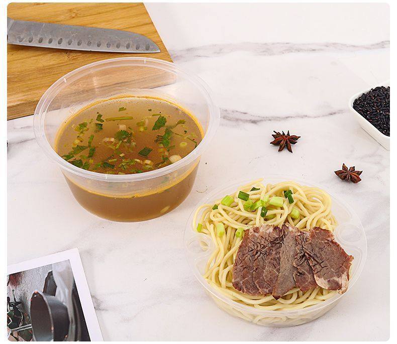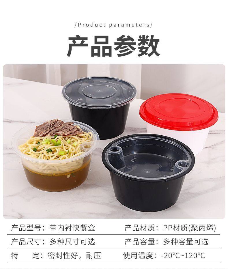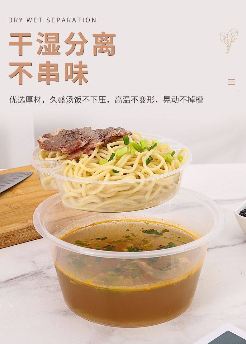 Round disposable noodle soup separation bowl packing box thickened high cover double layer with lined takeaway soup meal box wholesale