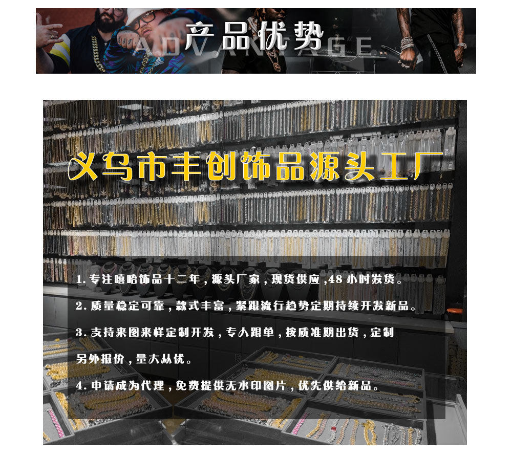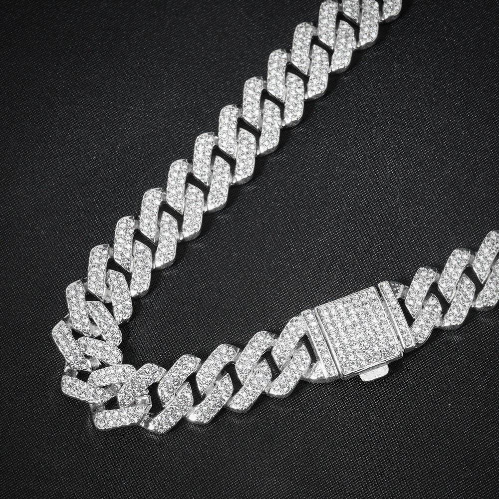 European and American Hip-Hop 14mm Full Diamond Rhombus Cuban Chain Men's Necklace Cross-Border Exclusive Exaggerated Collarbone Chain Neck Accessory