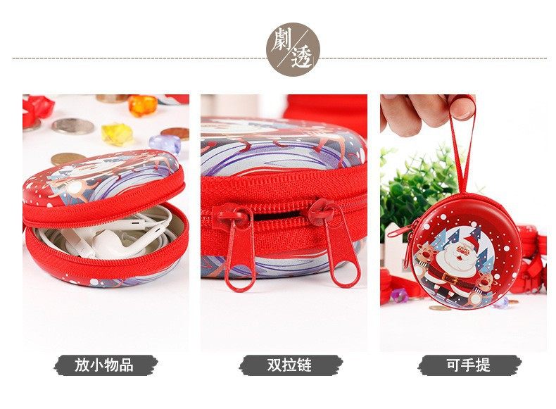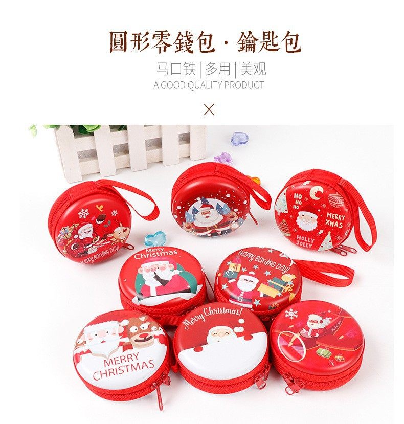 Creative Tinplate Christmas Coin Purse Cartoon Key Coin Zipper Bag Headset Data Cable Organize Storage Box
