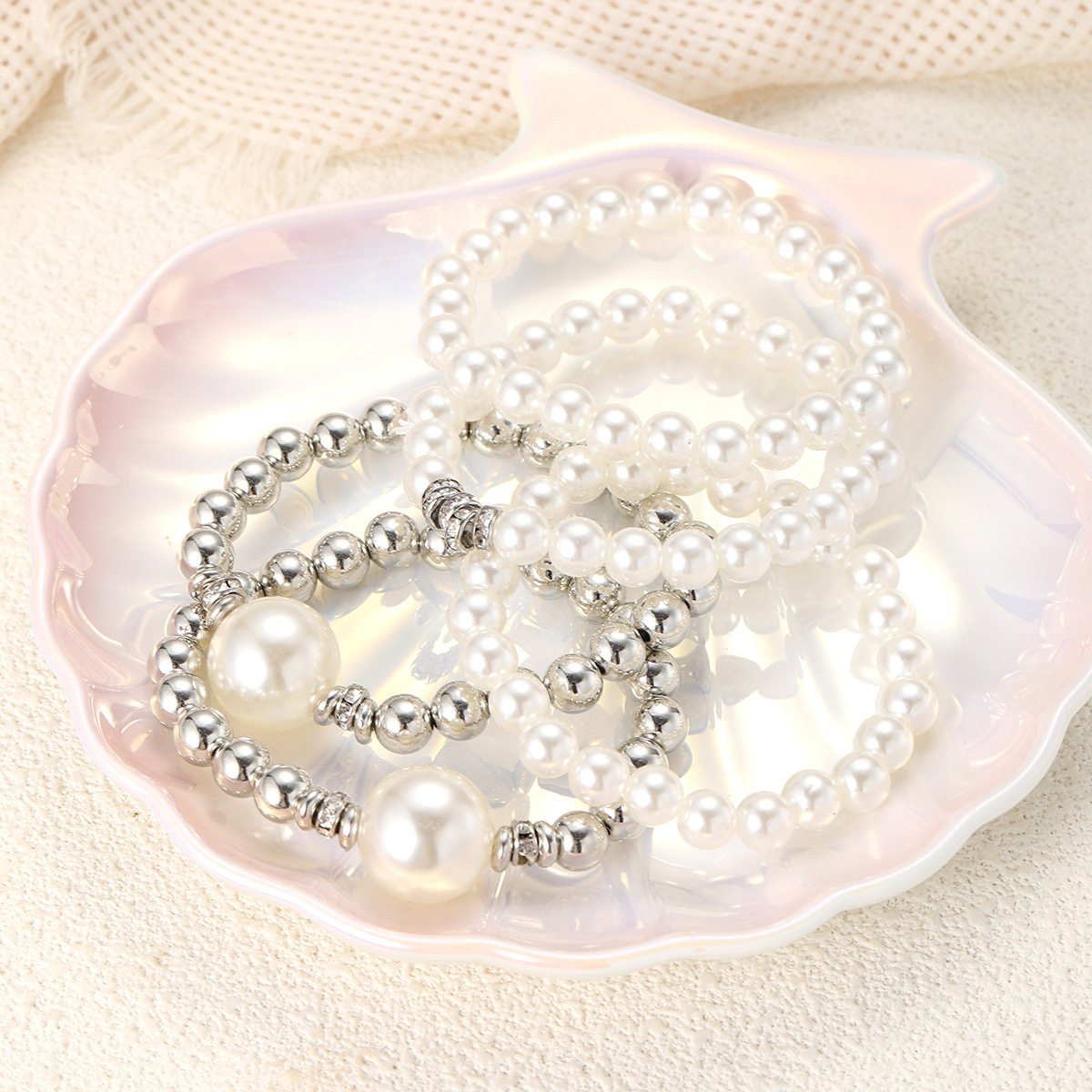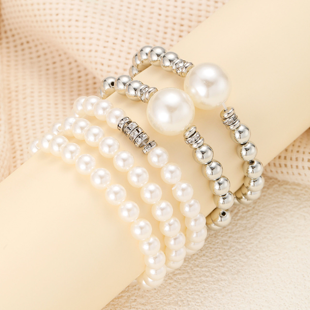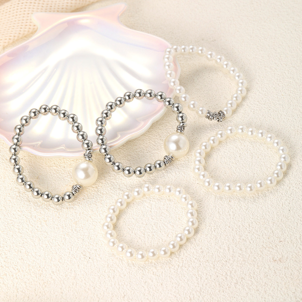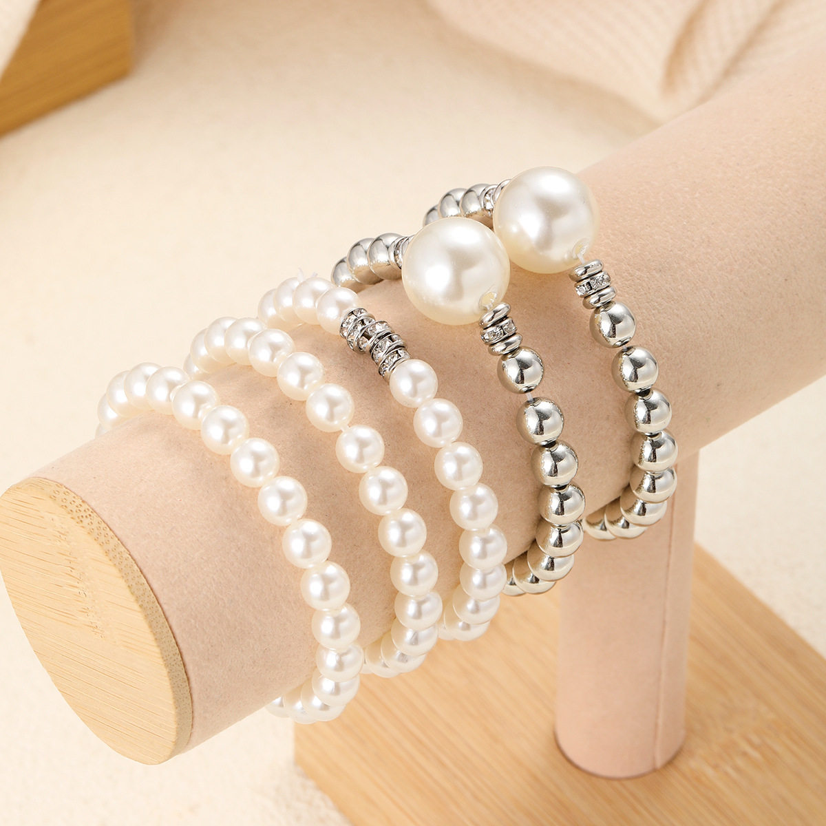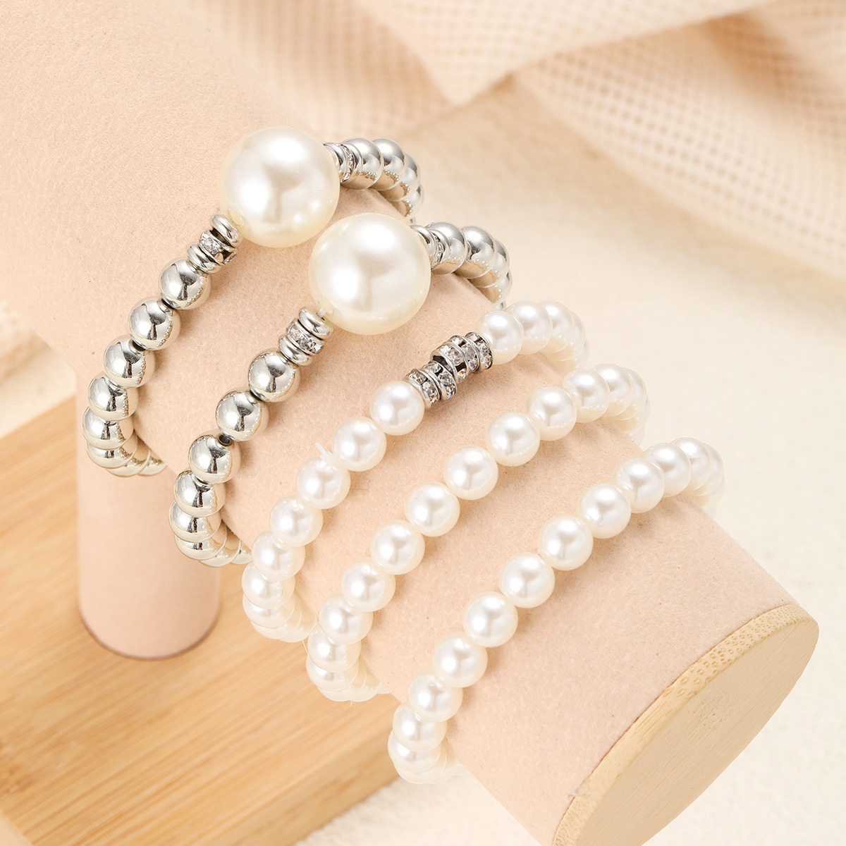 European and American Cross-Border New Fashion Exaggerated Imitation Pearl Ball Bracelet 5-Piece Stackable Creative Hand Jewelry Set