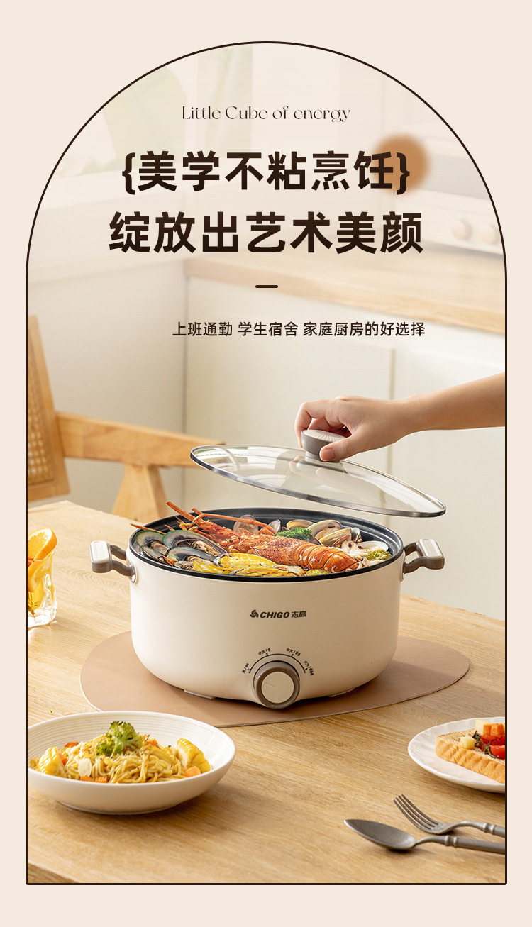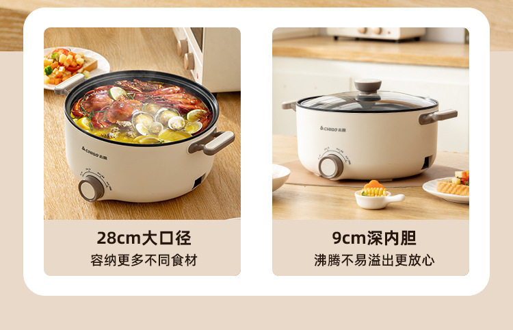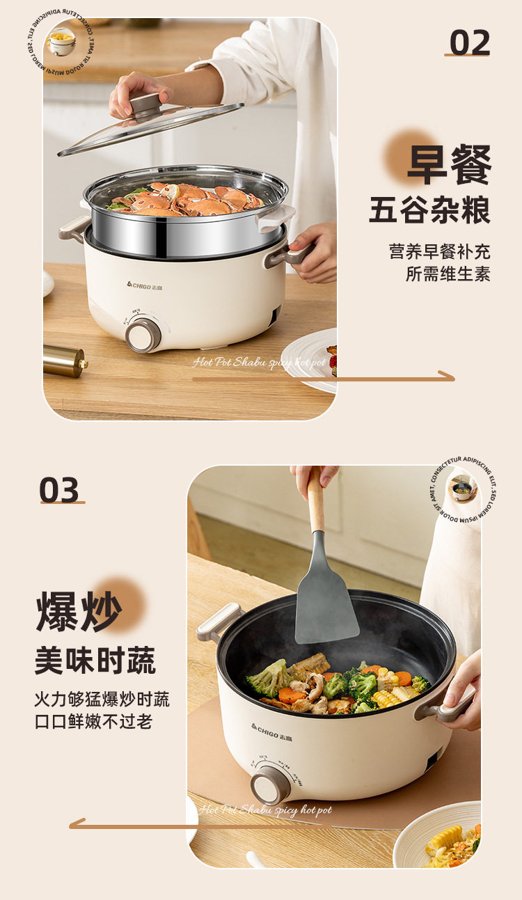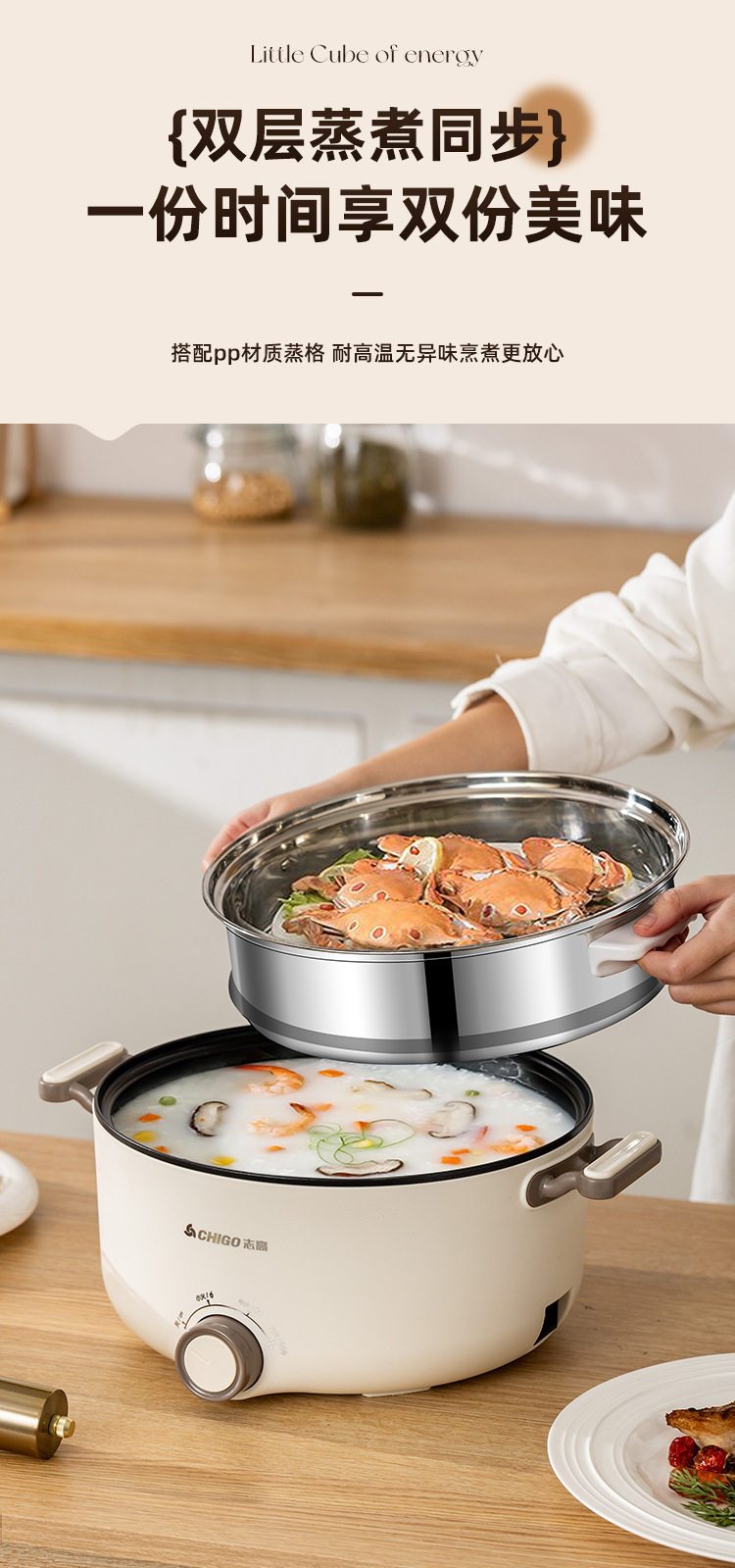 Chigo Electric Cooking Pot Multi-functional Household Student Dormitory Noodle Cooking Pot Cooking Non-stick Pot Kitchen Electric Hot Pot