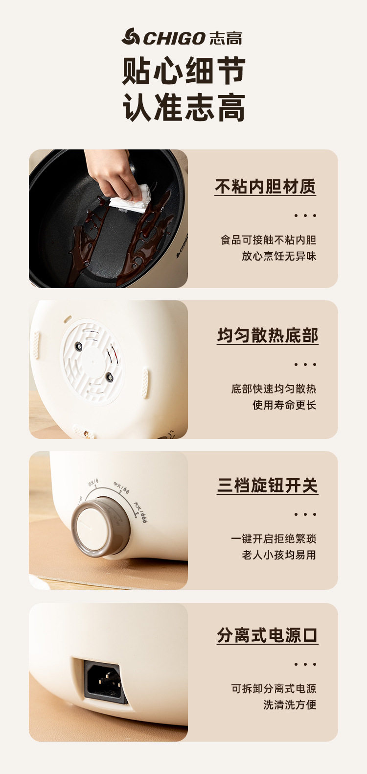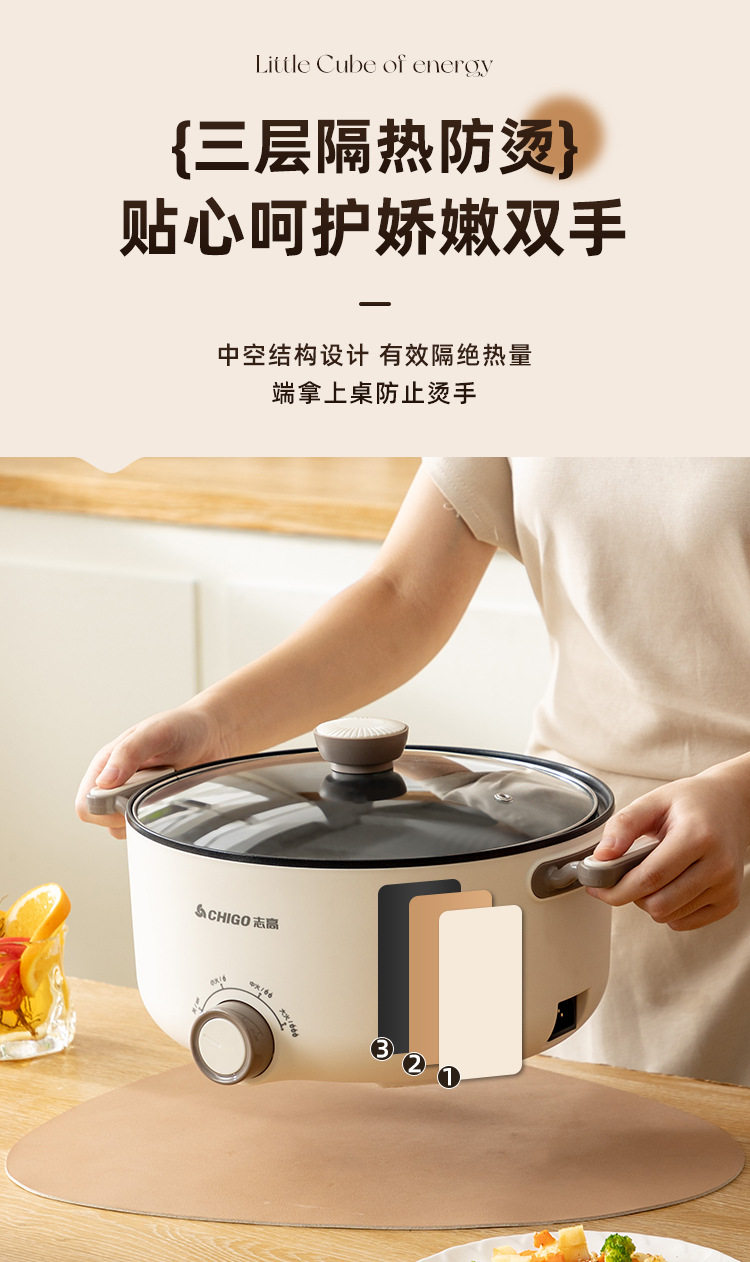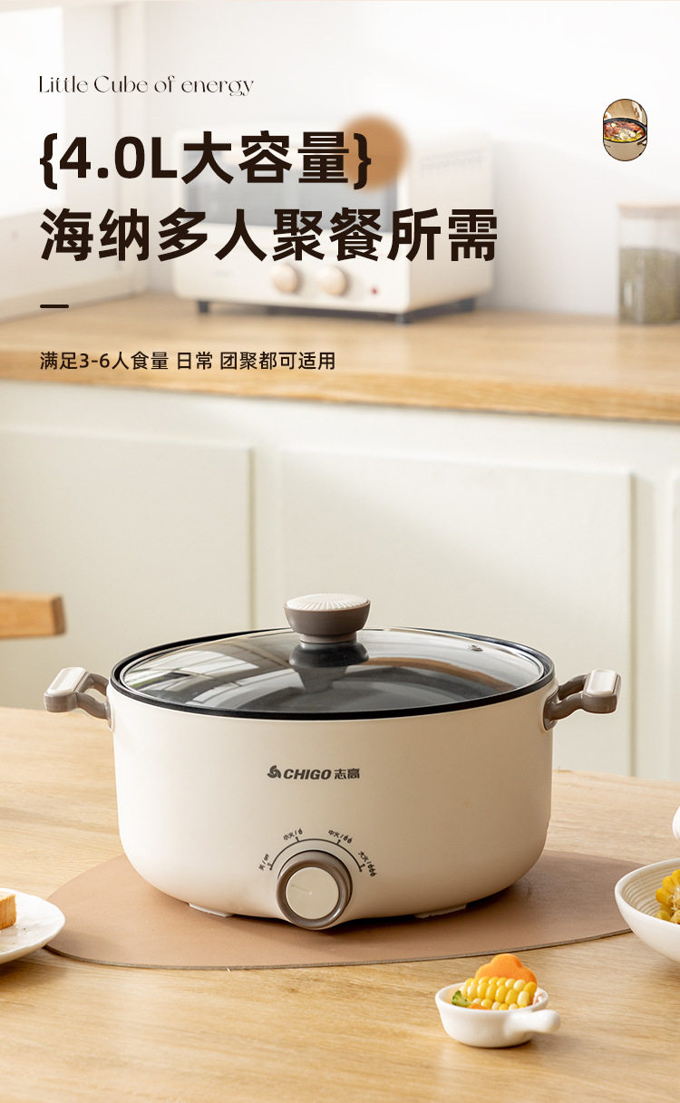 Chigo Electric Cooking Pot Multi-functional Household Student Dormitory Noodle Cooking Pot Cooking Non-stick Pot Kitchen Electric Hot Pot
