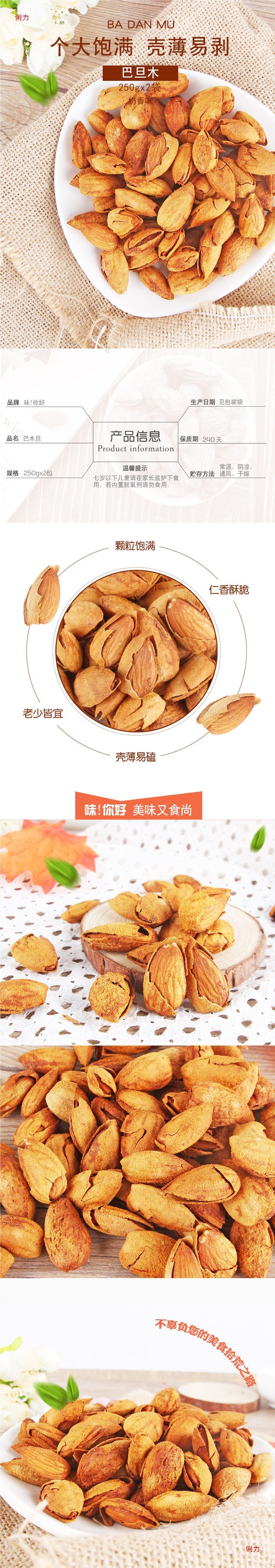 Hand-peeled almond 250gx2 bag milk-flavored almond almond almond paper bark almond nut snacks to produce dried fruit