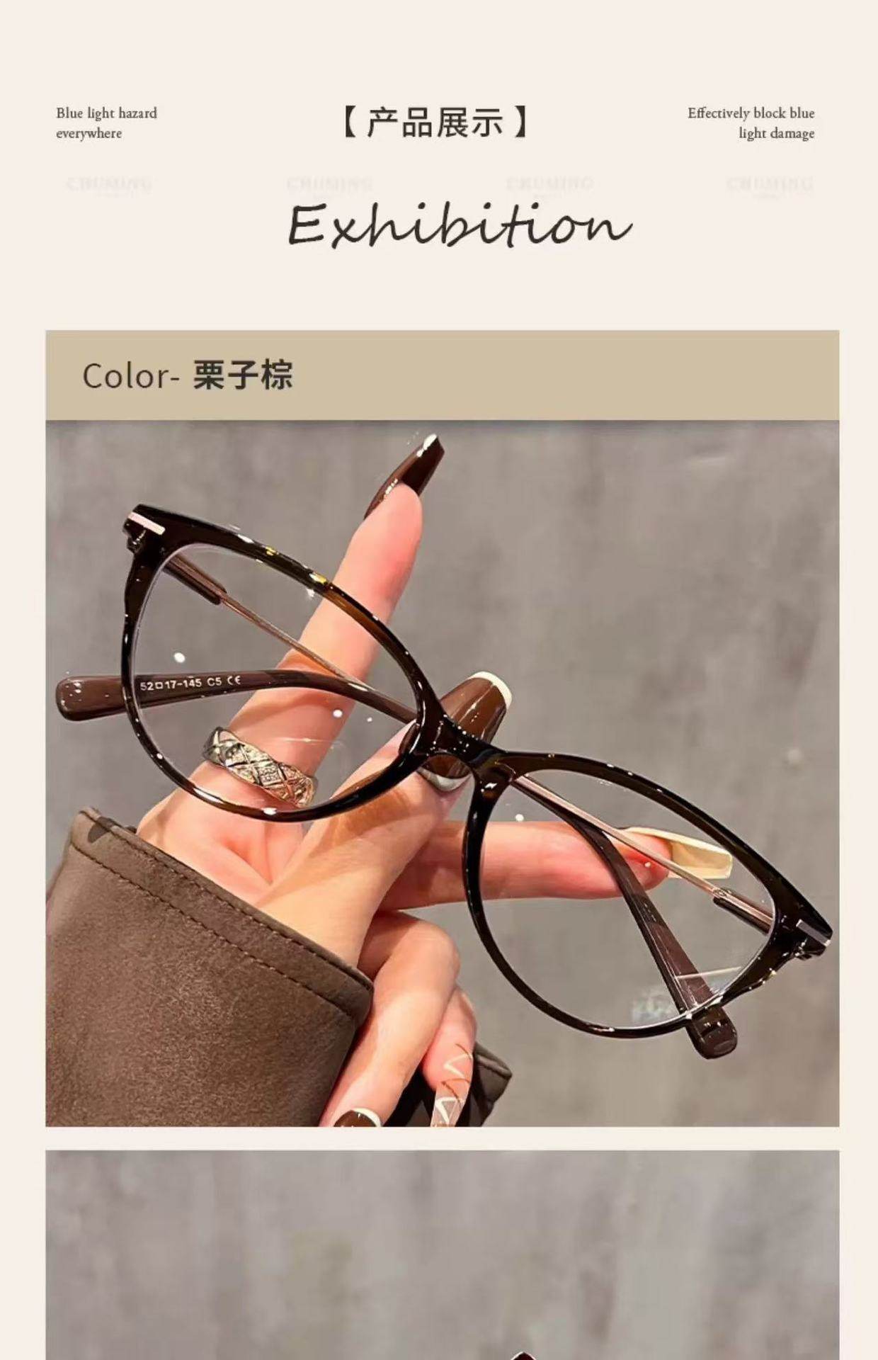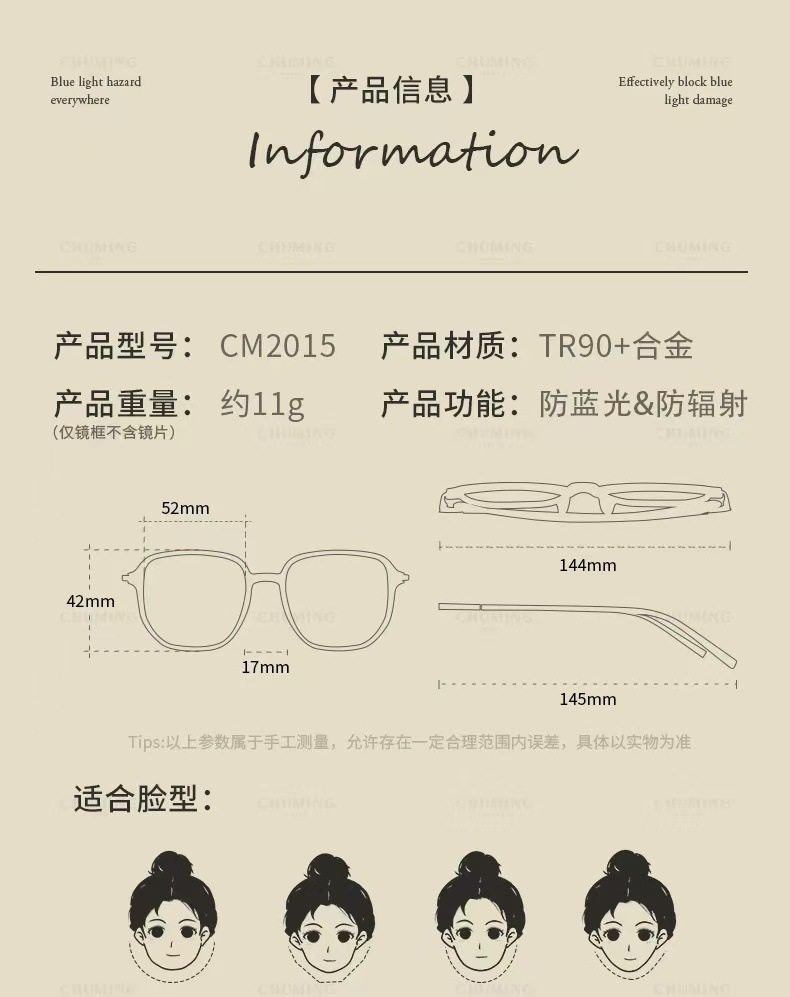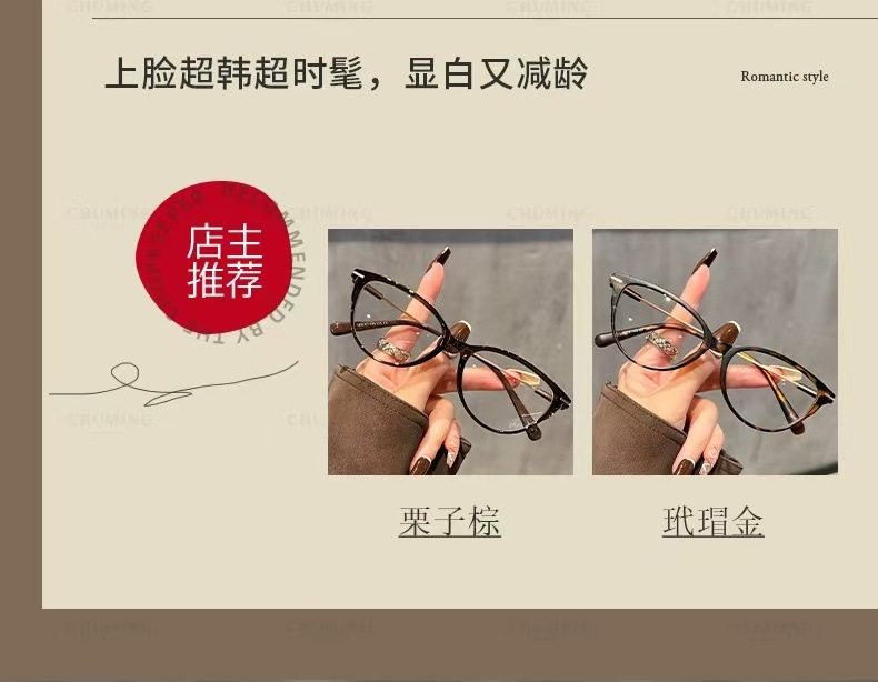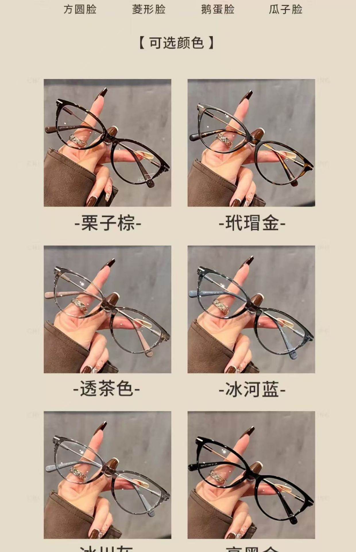 | Frame color | Chestnut brown,Tortoiseshell gold,Transparent brown,Glacier blue,Premium black silver,Bright black gold,Temperament gray |