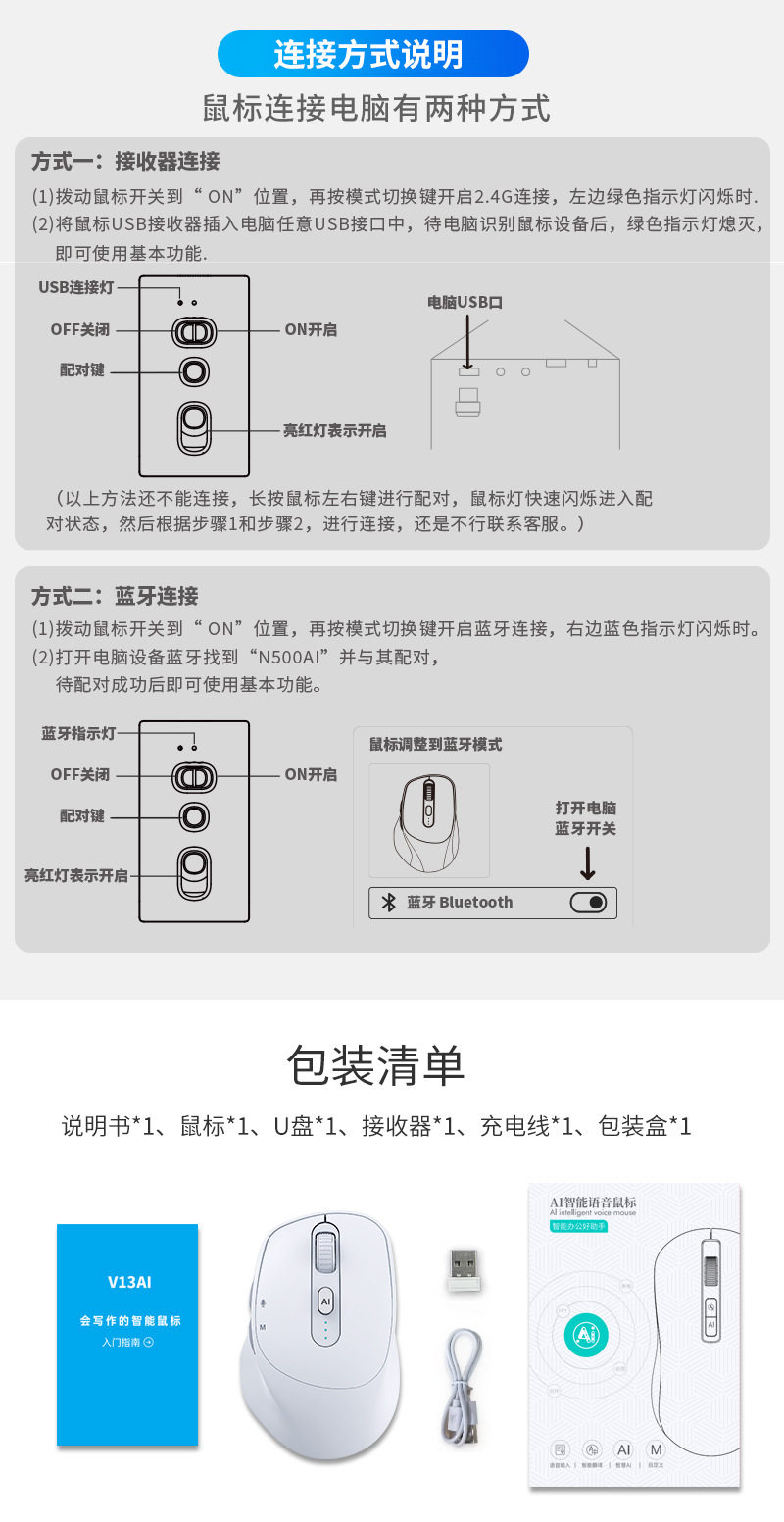 Factory in stock intelligent AI mouse V13 voice typing translation AI intelligent assistant writing painting form ppt