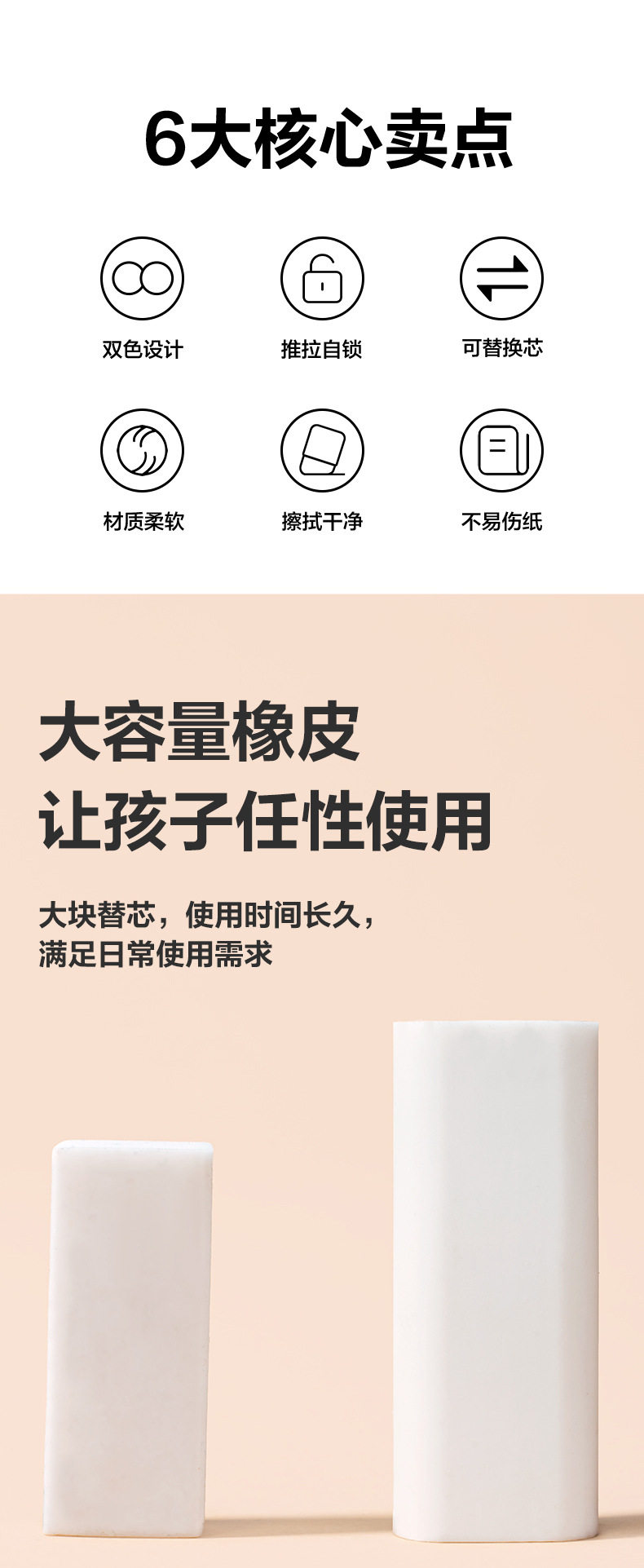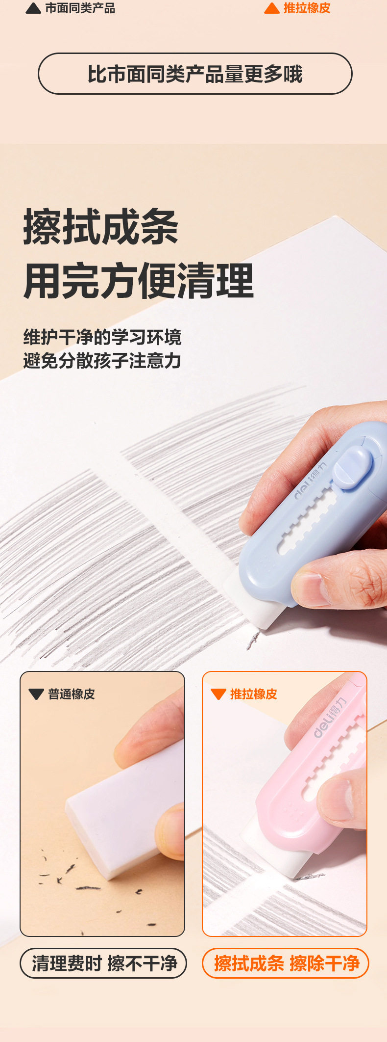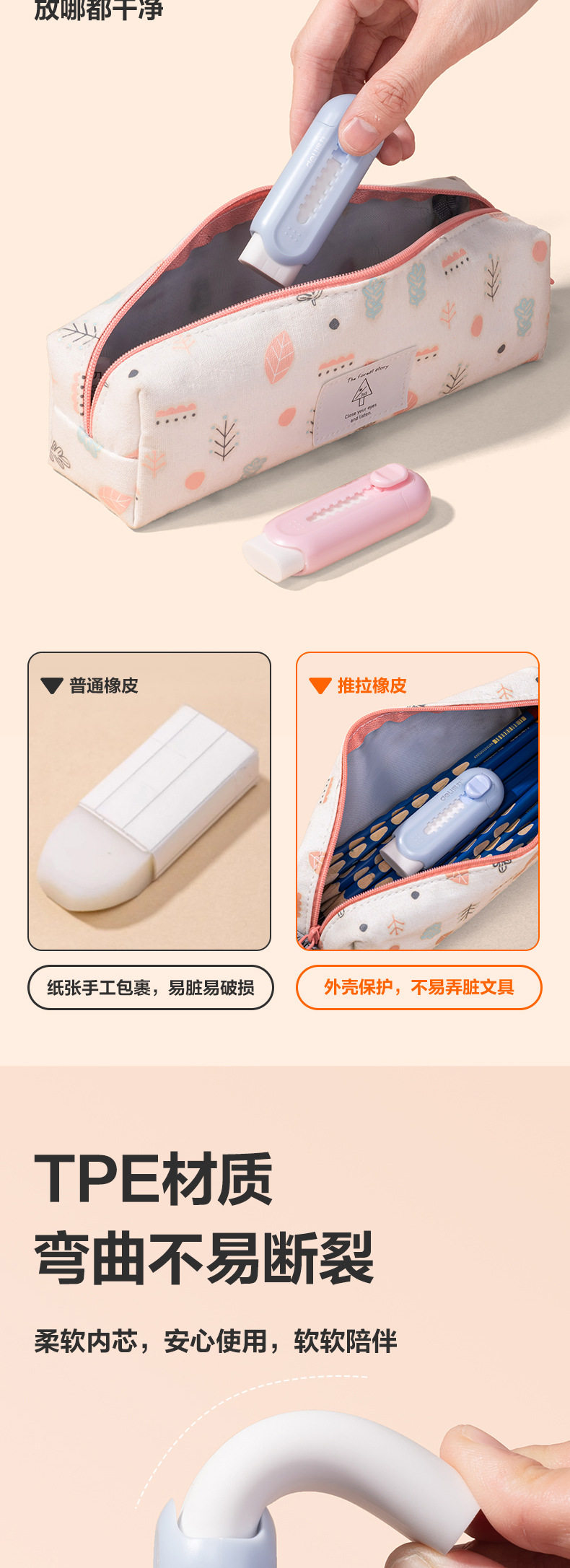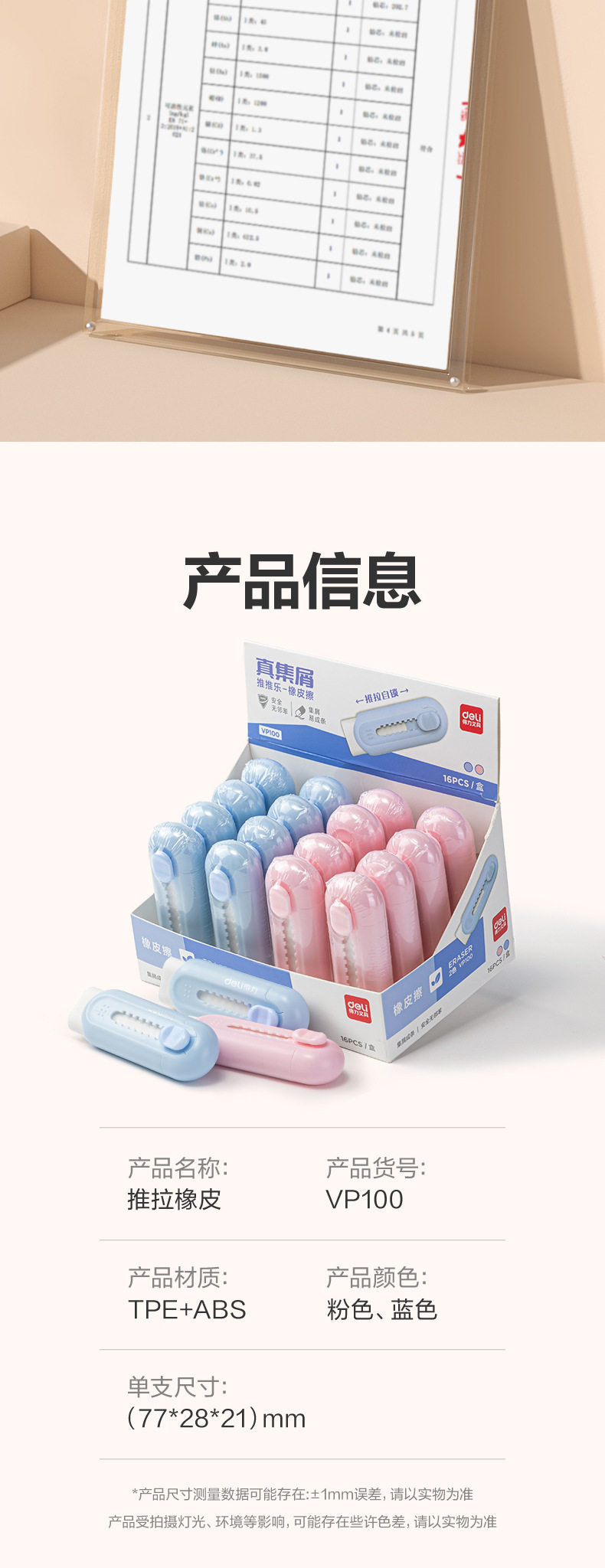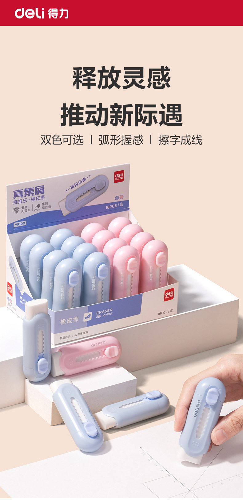 Deli VP100 Push-Pull Eraser Cute Large Size Less Scrap and No Marks for Primary School Students Clean Kindergarten Eraser