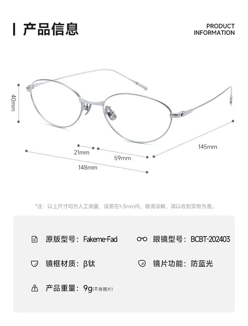 | Frame color | Silver frame anti-blue light,Gold frame anti-blue light,Black frame anti-blue light,For myopia, please contact customer service |