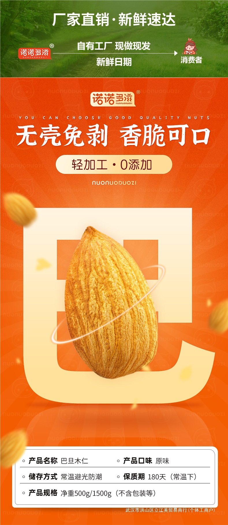| Flavor | Raw almond kernels [ 0.5kg tasting] original flavor,Raw almond kernels [ 1.0kg recommended] original flavor,Raw almond kernels [ 2.5kg wholesale] original flavor,Ripe almond kernels [ 0.5kg early adopter] original flavor,Cooked almond kernels [ 1.0kg recommended] original flavor,Cooked almond kernels [ 2.5kg wholesale] original flavor |