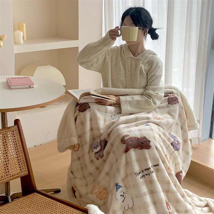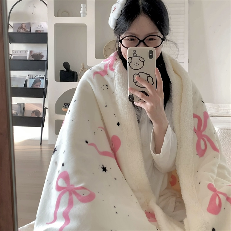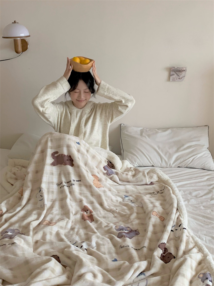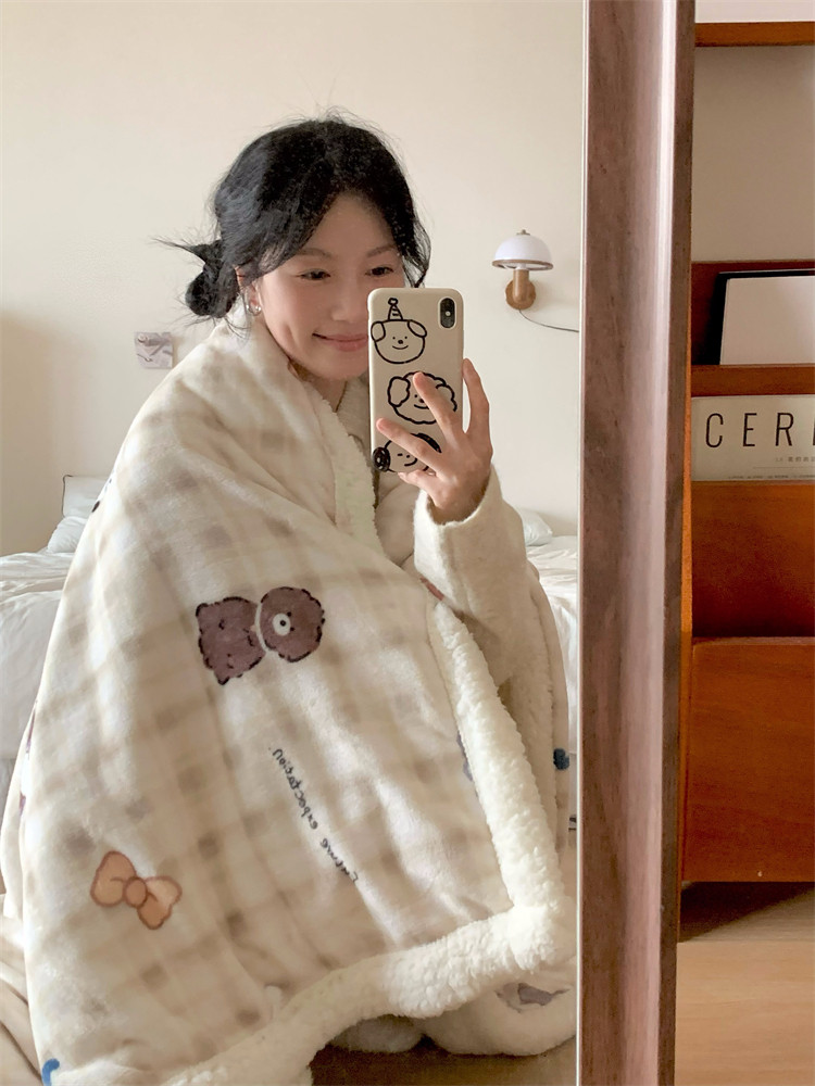 Thickened Lamb Fleece Blanket Office Nap Winter Shawl Blanket Coral Fleece Air Conditioning Sofa Cover Blanket Kindergarten