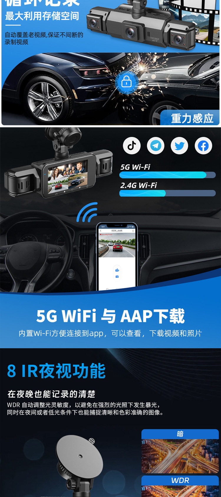 Function Reversing image,Motion detection,Loop recording,Parking monitoring,Enhanced night vision,Before and after video