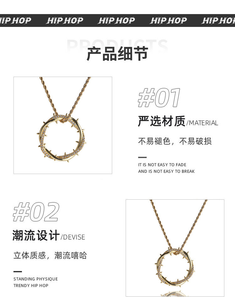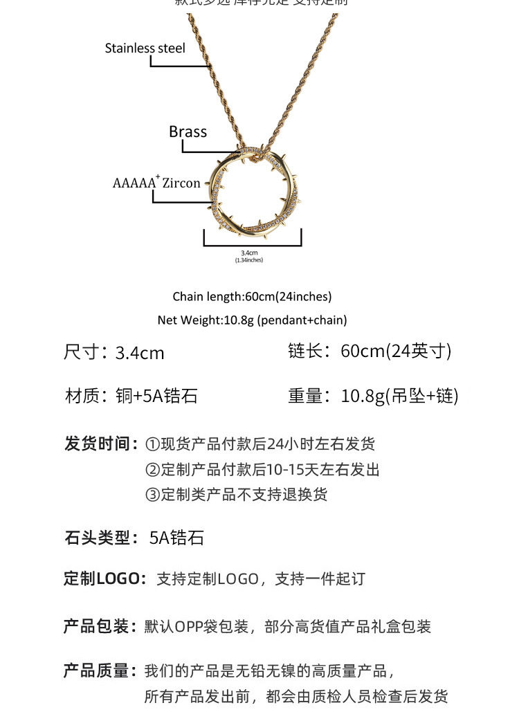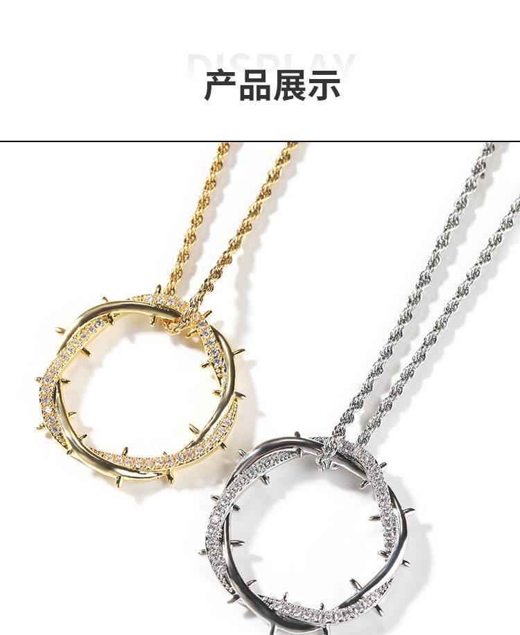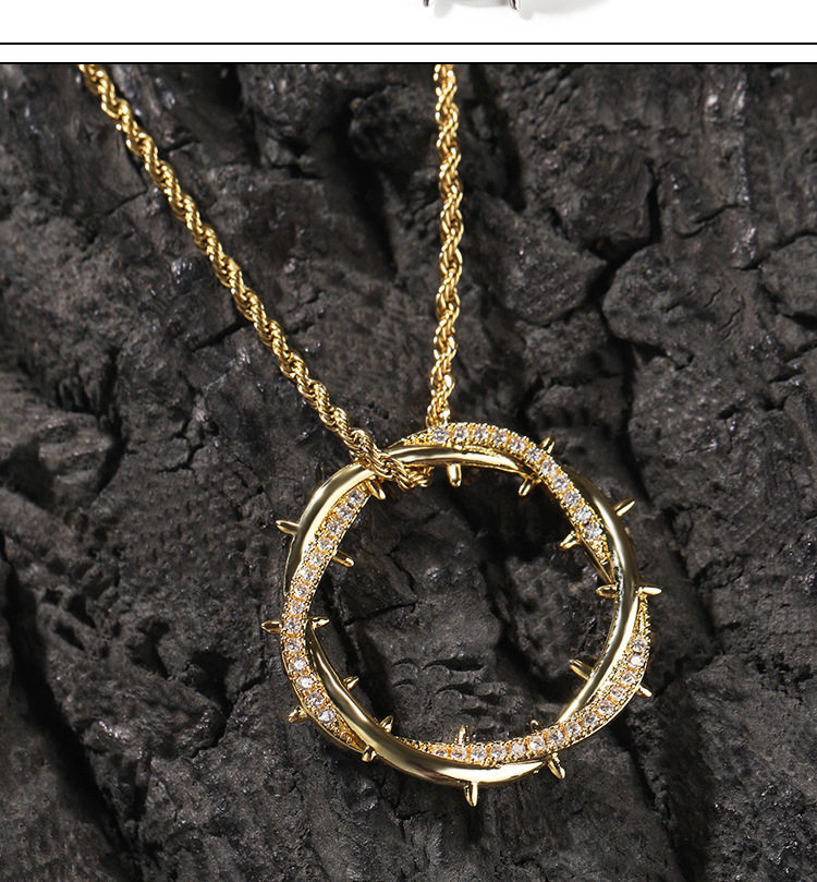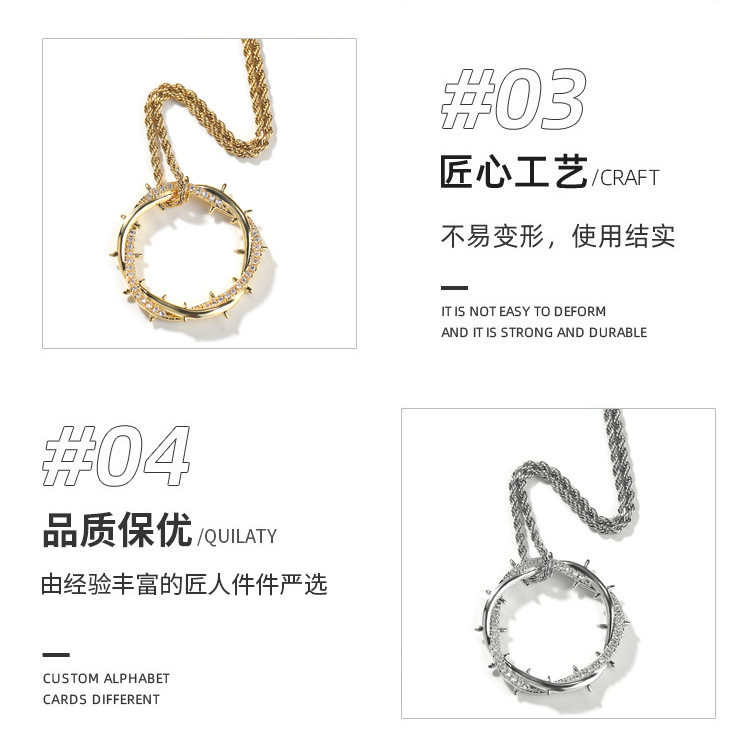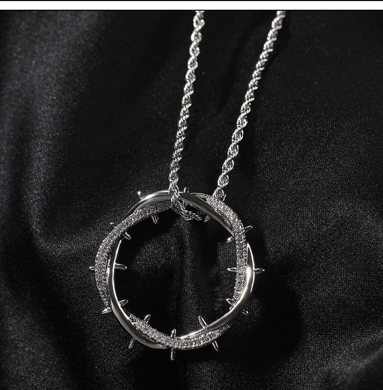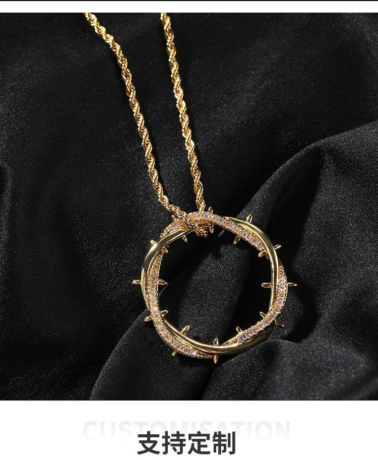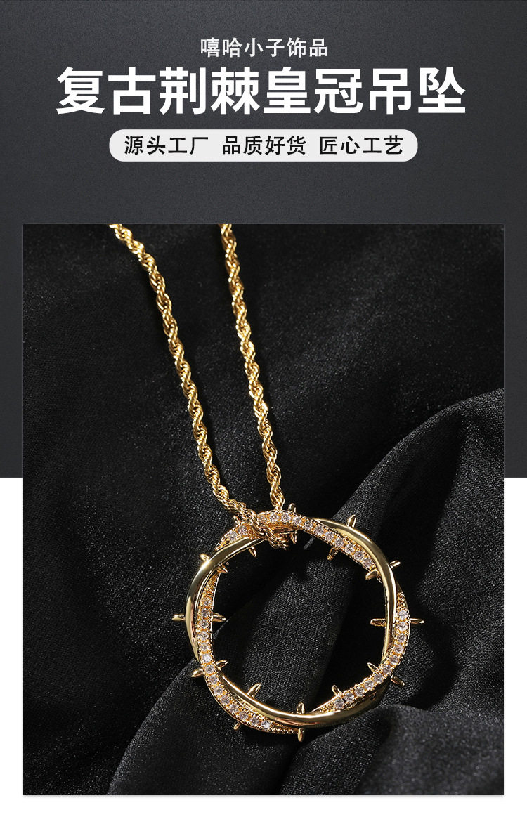 European and American retro thorn crown pendant necklace niche design copper inlaid zircon hip hop jewelry wholesale
