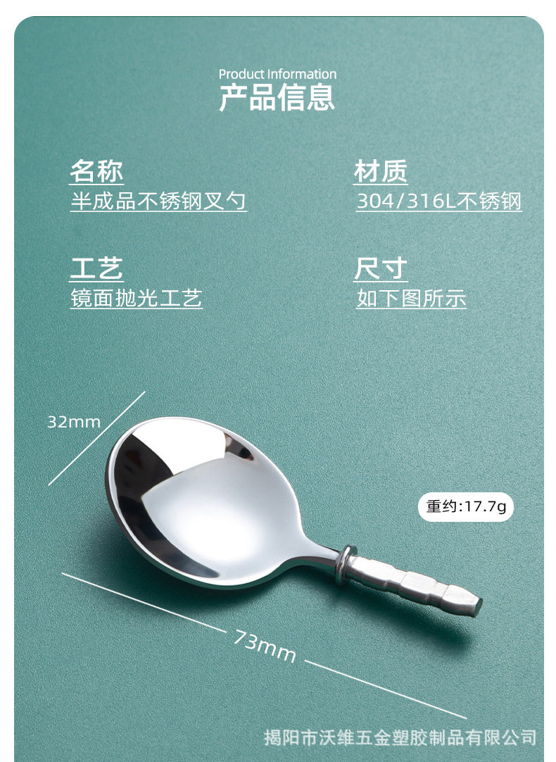 316 children's short handle fork spoon semi-finished stainless steel fork spoon baby eating spoon auxiliary spoon head plug-in embryo