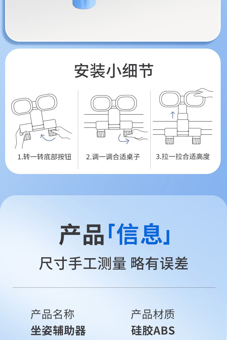 | Color | [upgraded reversible/table clip model] sky blue, free stickers,[upgraded flipable/table clip model] girly pink, free stickers,[upgraded flipable/backboard model] sky blue, free stickers,[upgraded flipable/backboard model] girly powder, free stickers,[posture correction set/table clip style] sky blue + pen grip corrector,[posture correction set/clip table style] girly pink + pen grip corrector,[posture correction set/backboard model] sky blue + pen grip corrector,[posture correction set/backing plate style] girly pink + pen grip corrector,[posture adapter reading set/clip table style] sky blue + reading stand,[posture adapter reading set/clip table style] girly pink + reading stand,[posture adapter reading set/backing pad style] sky blue + reading stand,[posture adapter reading set/backing pad style] girly pink + reading stand |