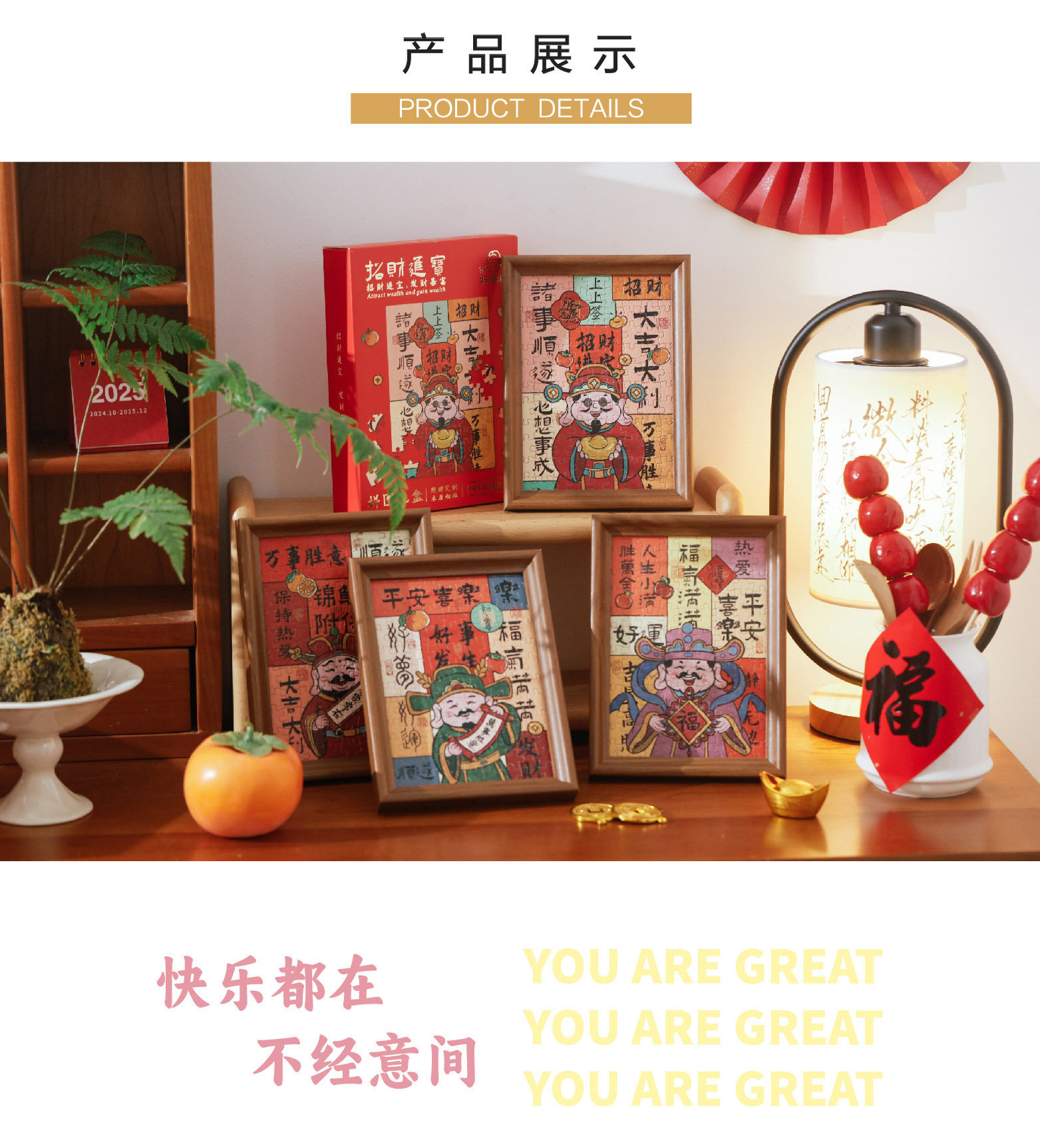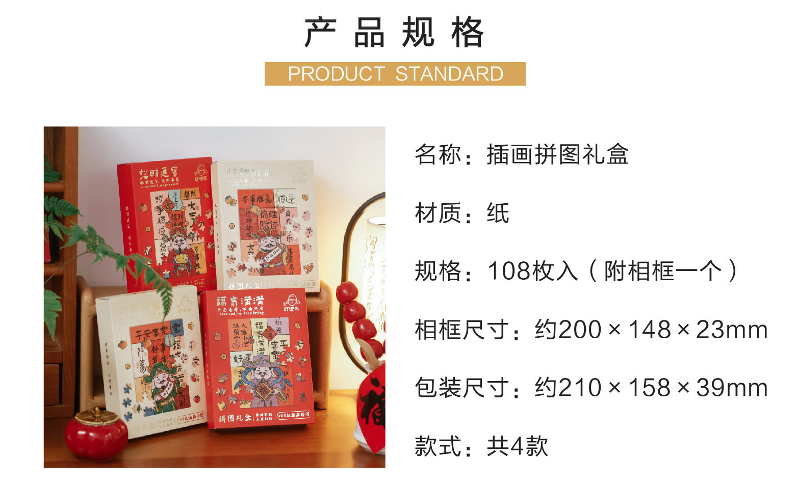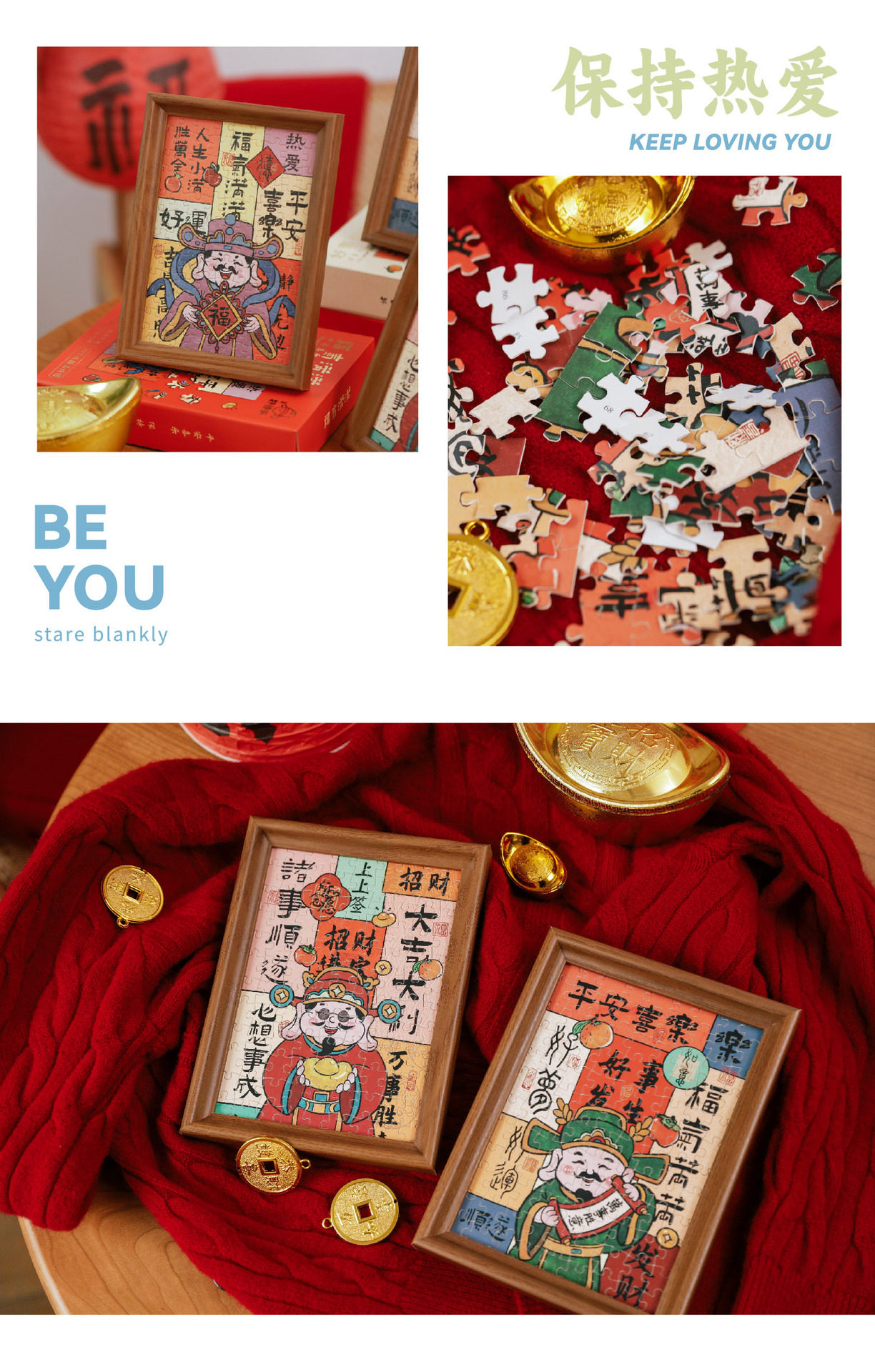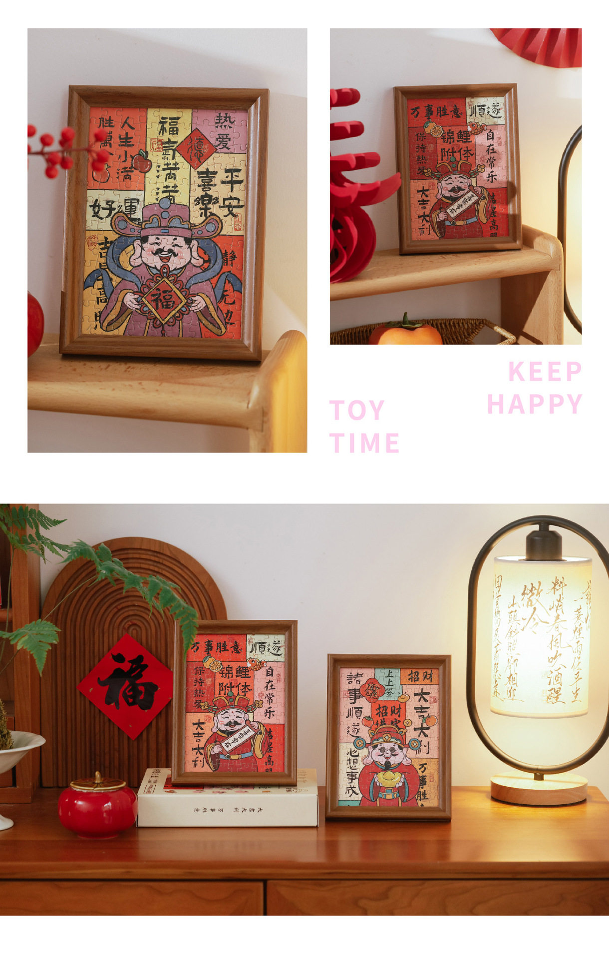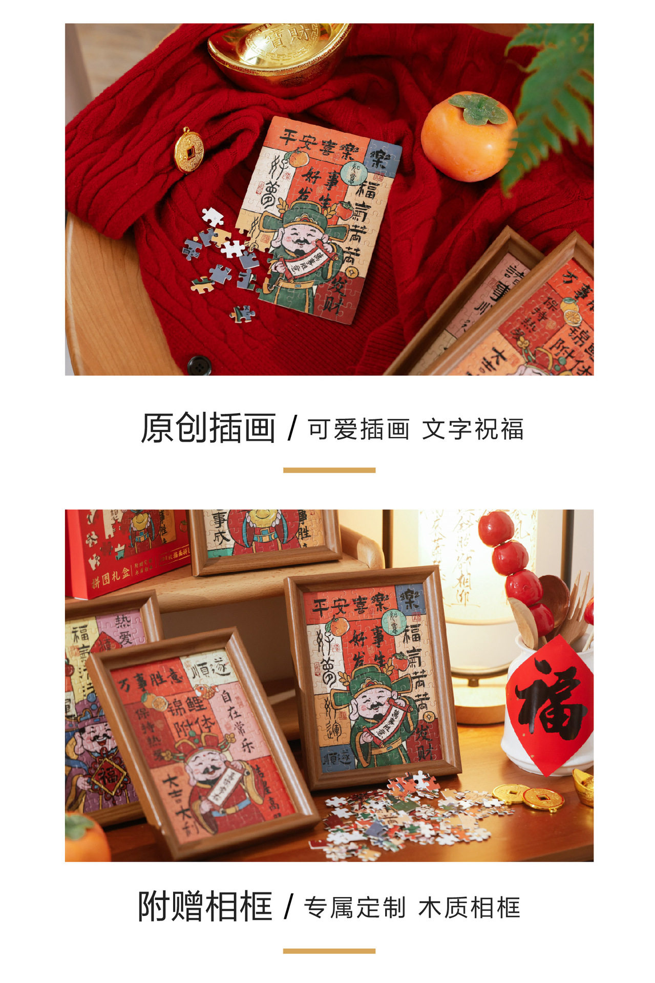 Fortune-making Jigsaw Puzzle Photo Frame New Year Decoration Gift Box Table 108-making God of Wealth Photo Frame New Year's Day Spring Festival Gift