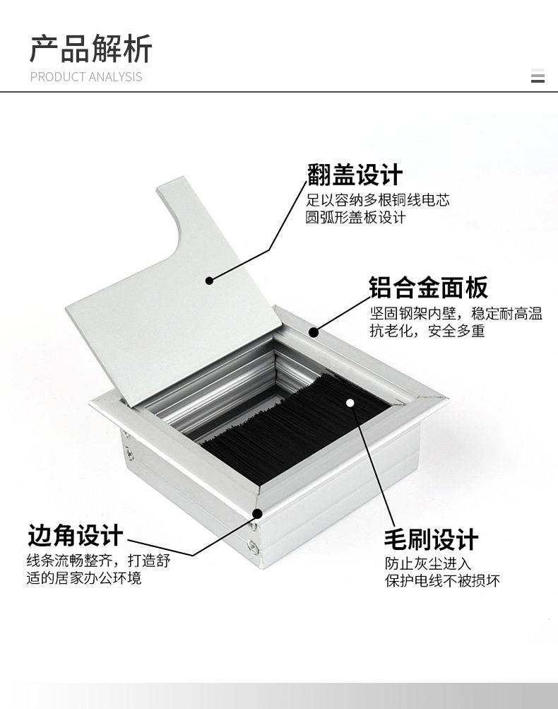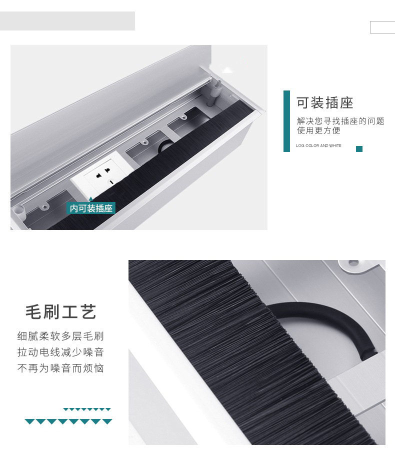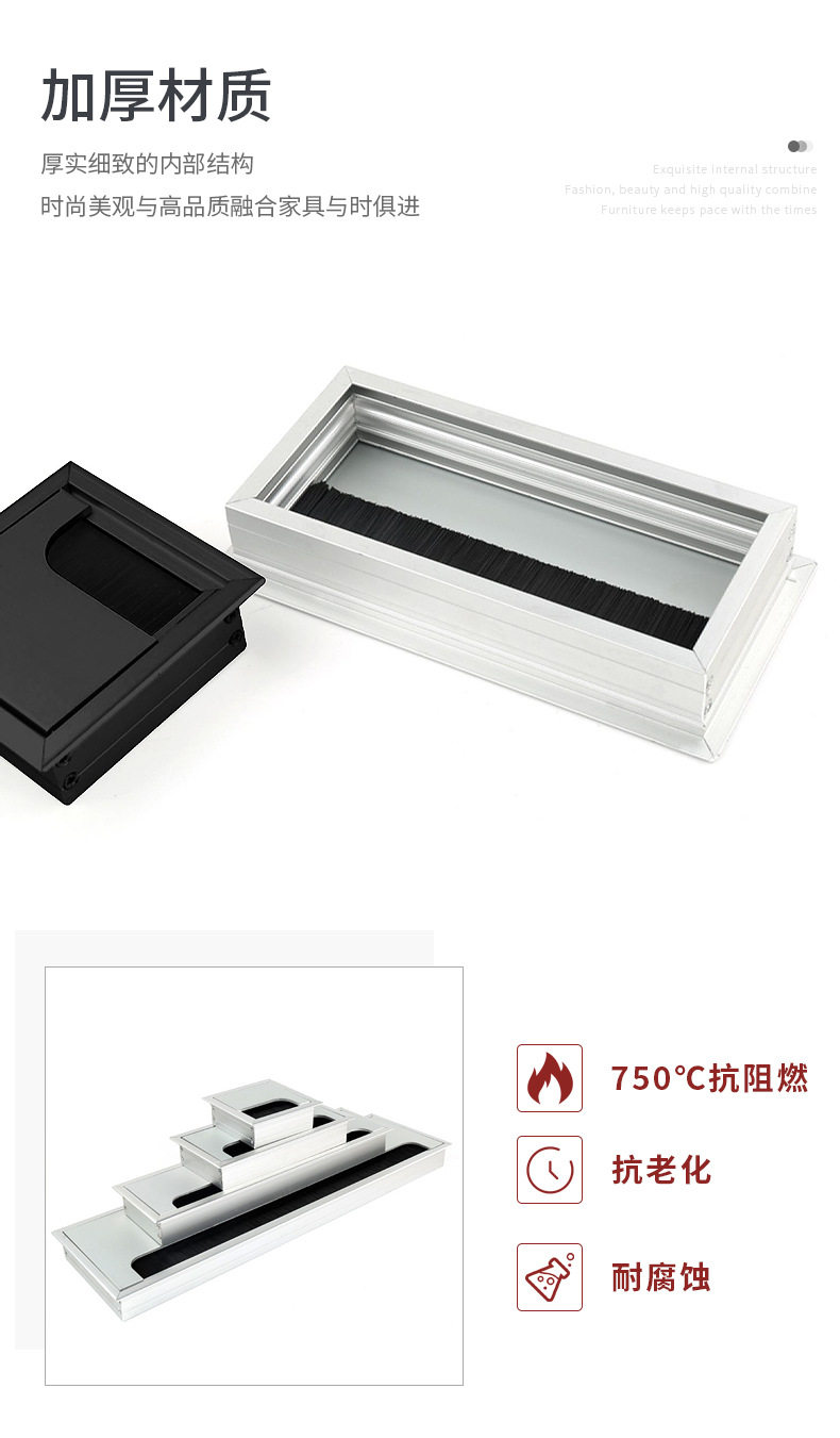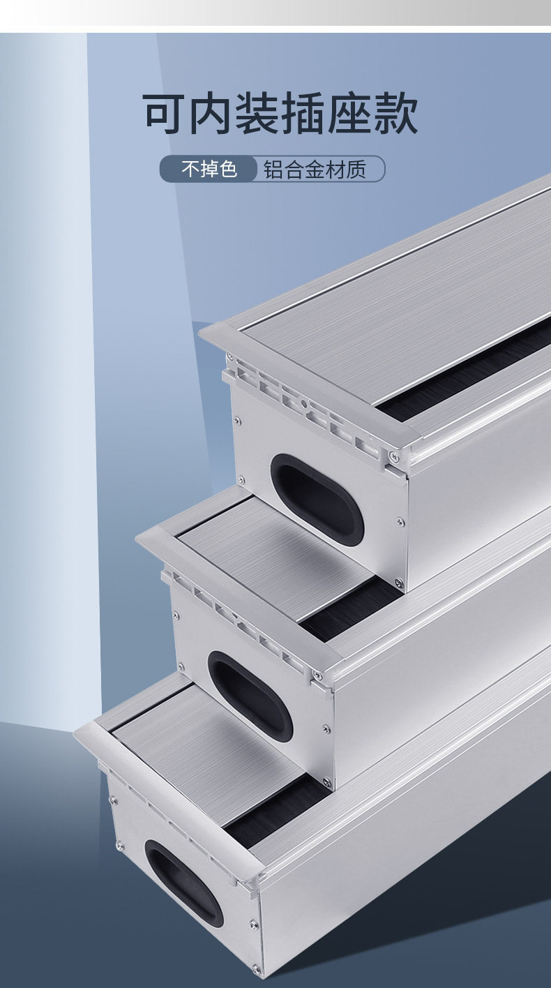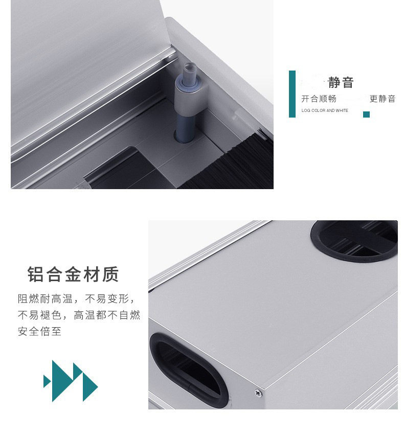 Aluminum Alloy Wire Box Office Desk Computer Desk Flip Cover with Brush Wire Box TV Cabinet Hole Wire Decoration Wire Hole Cover