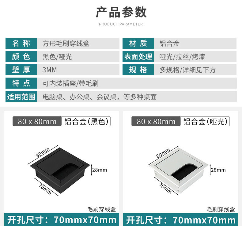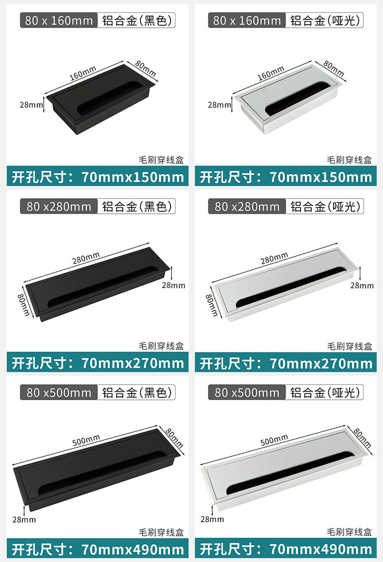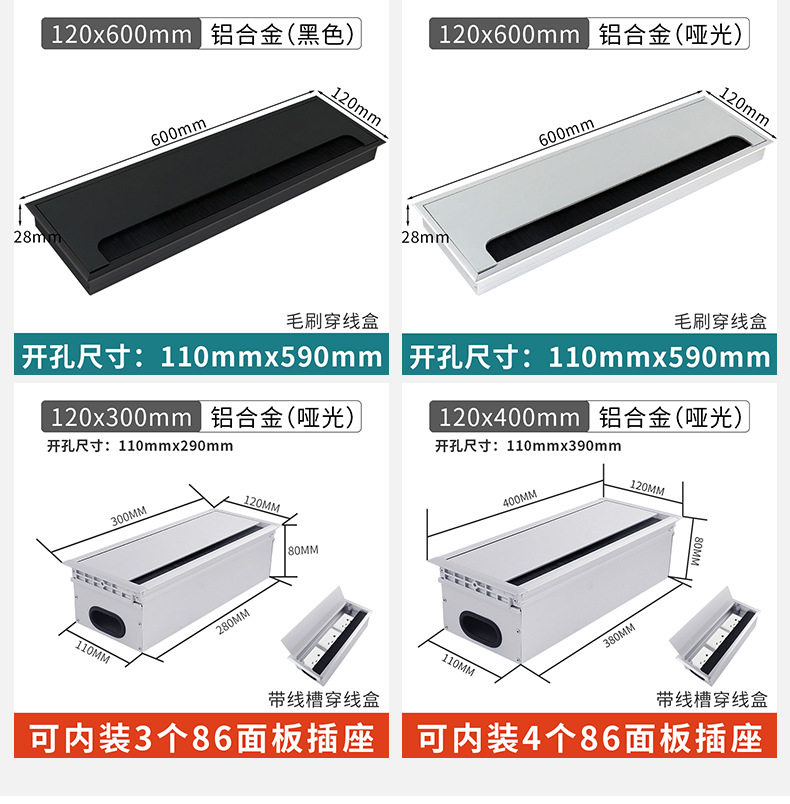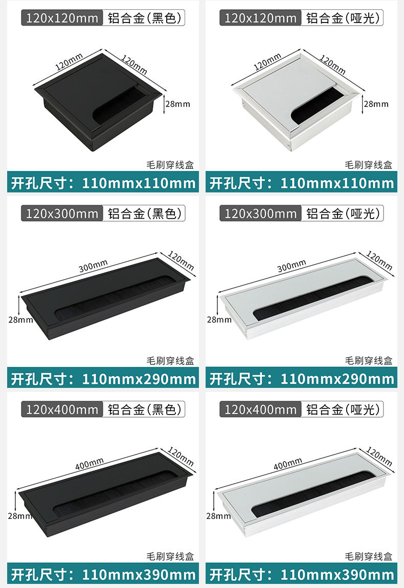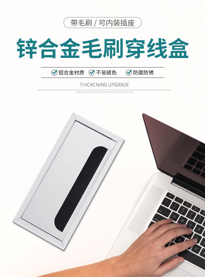 Aluminum Alloy Wire Box Office Desk Computer Desk Flip Cover with Brush Wire Box TV Cabinet Hole Wire Decoration Wire Hole Cover