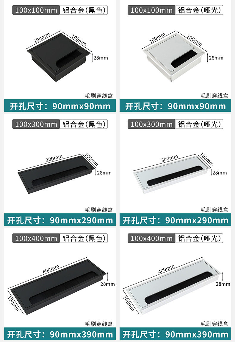 | Specifications | 80x80 aluminum alloy wire box,80x160 aluminum alloy wire box,80x280 aluminum alloy wire box,80x500 aluminum alloy wire box,100x100 aluminum alloy wire box,100x300 aluminum alloy wire box,100x400 aluminum alloy wire box,120x120 aluminum alloy wire box,120x300 aluminum alloy wire box,120x400 aluminum alloy wire box,120x600 aluminum alloy wire box,Black80x80mm,Black80x160mm,Black 80x200 aluminum alloy wire box,Black80x280mm,Black80x500mm,Black 100x100mm,Black 100x300mm,Black 100x400mm,Black120x120mm,Black120x300mm,Black120x400mm,Black120x600mm,Matte box with line 120x300mm,Matte box with line 120x400mm |