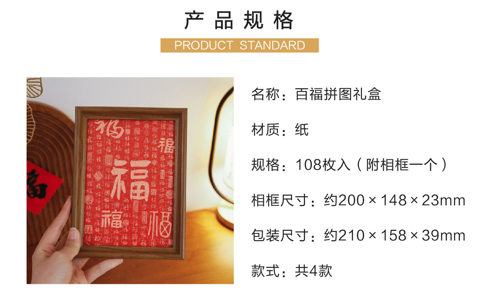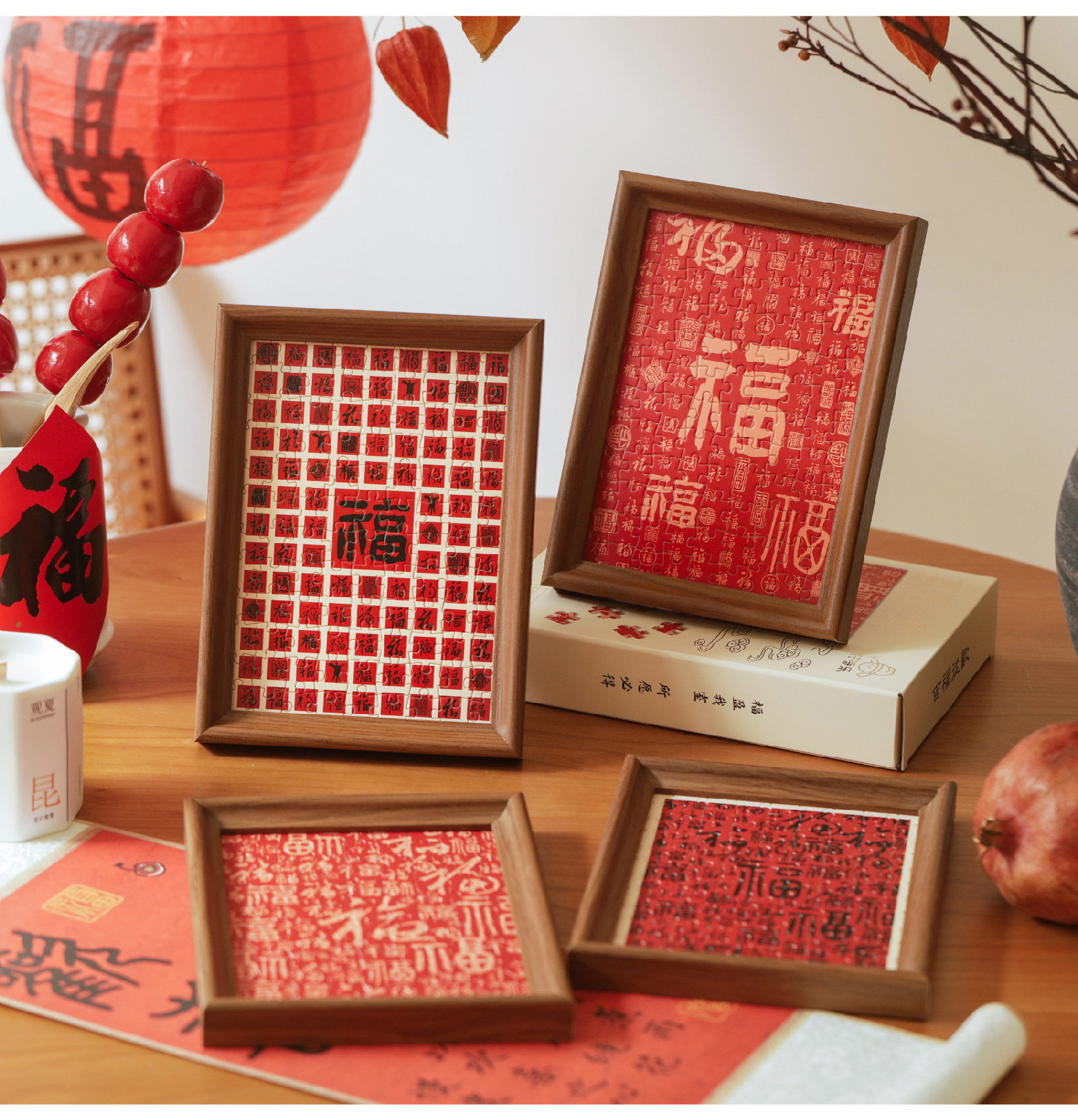 Baifu Linmen Puzzle Gift Box suit with Framed Photo Frame Chinese Style Calligraphy DIY New Year Gift Desktop Ornaments