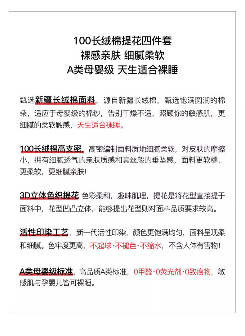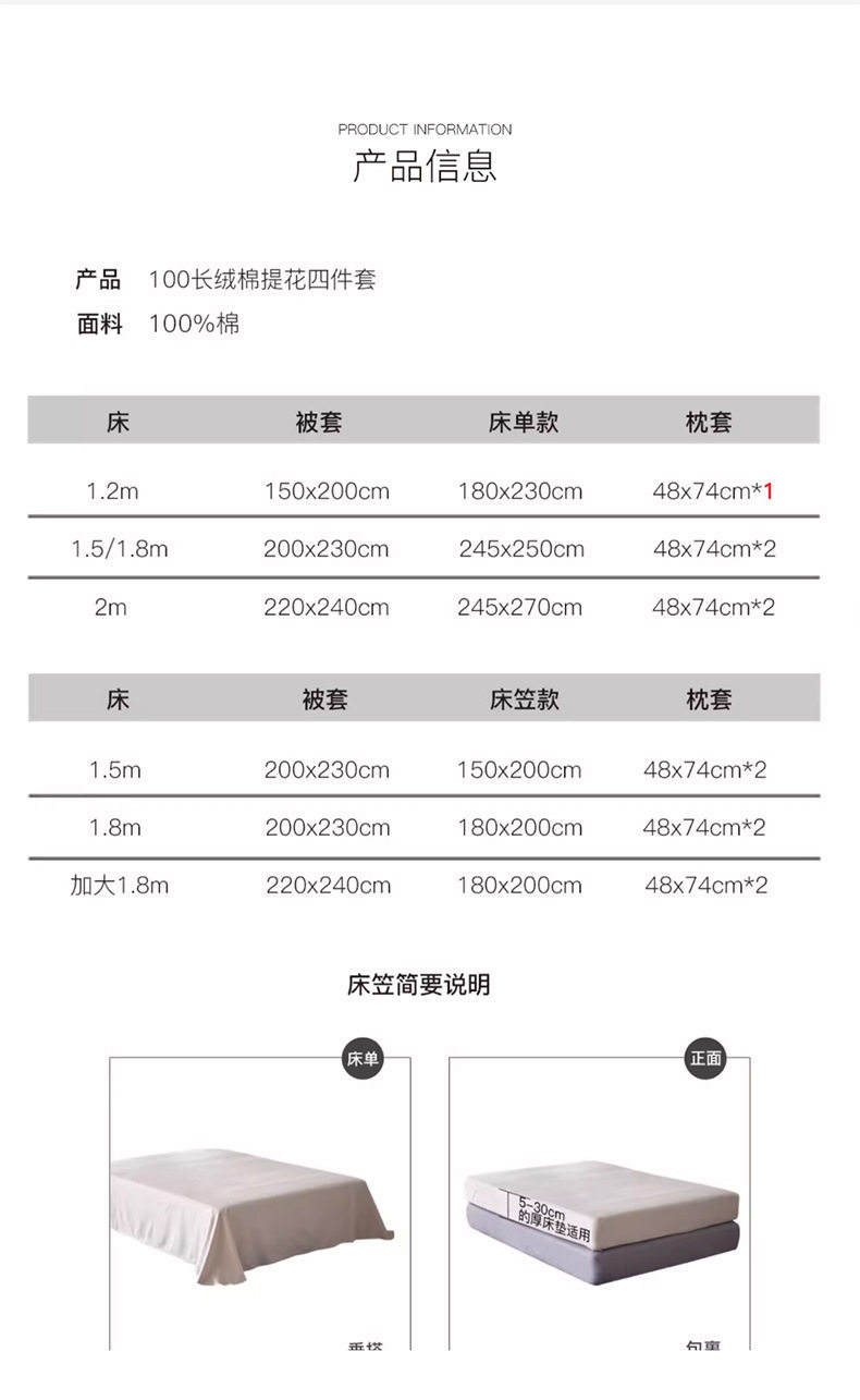 | Dimensions | 1.2m bed sheet three-piece set [quilt cover 150*200cm],1.5m bed sheet four-piece set [quilt cover 200*230cm],1.8m bed sheet four-piece set [quilt cover 200*230cm],2.0m bed sheet four-piece set [quilt cover 220*240cm],1.5m four-piece fitted sheet set [quilt cover 200*230cm],1.8m four-piece fitted sheet set [quilt cover 200*230cm] |