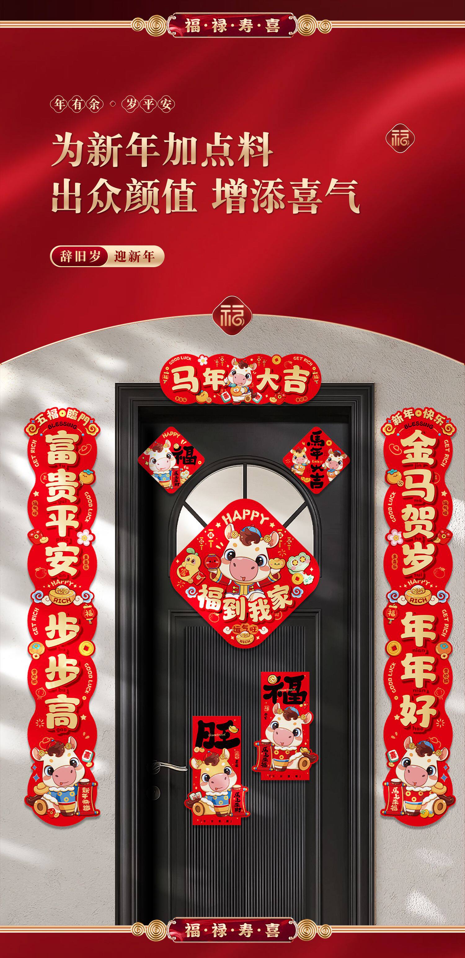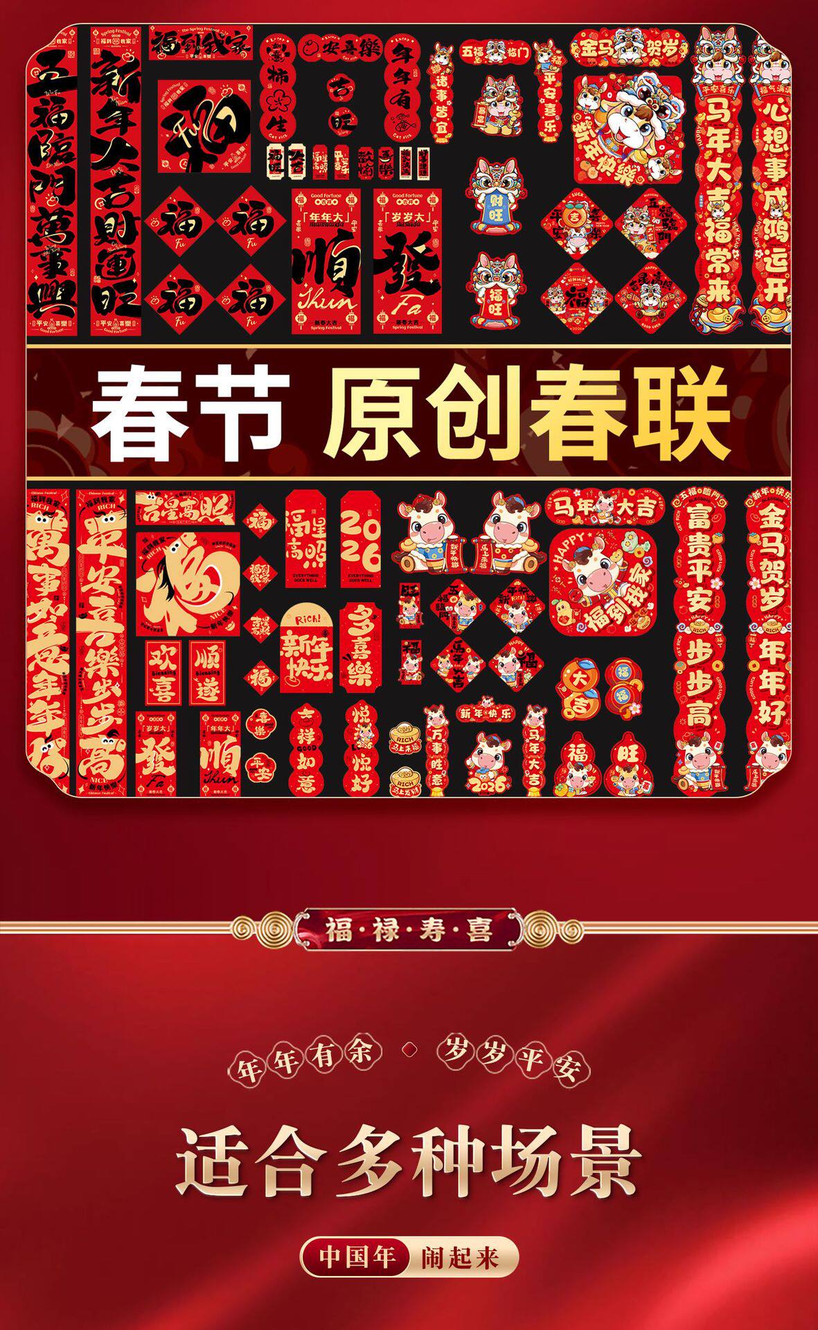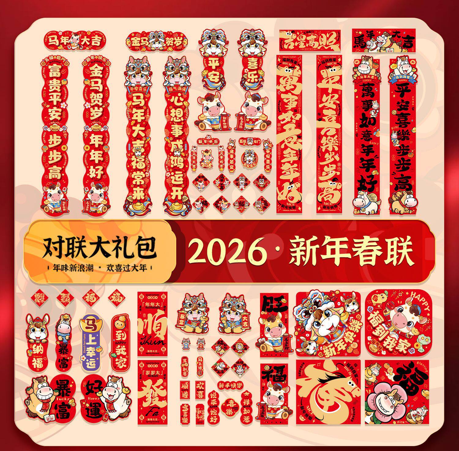 2026 Year of the Horse New Spring Festival Couplet Gift Pack New Year Home Decoration Fortune Character Door Stickers New Year Arrangement Decorations
