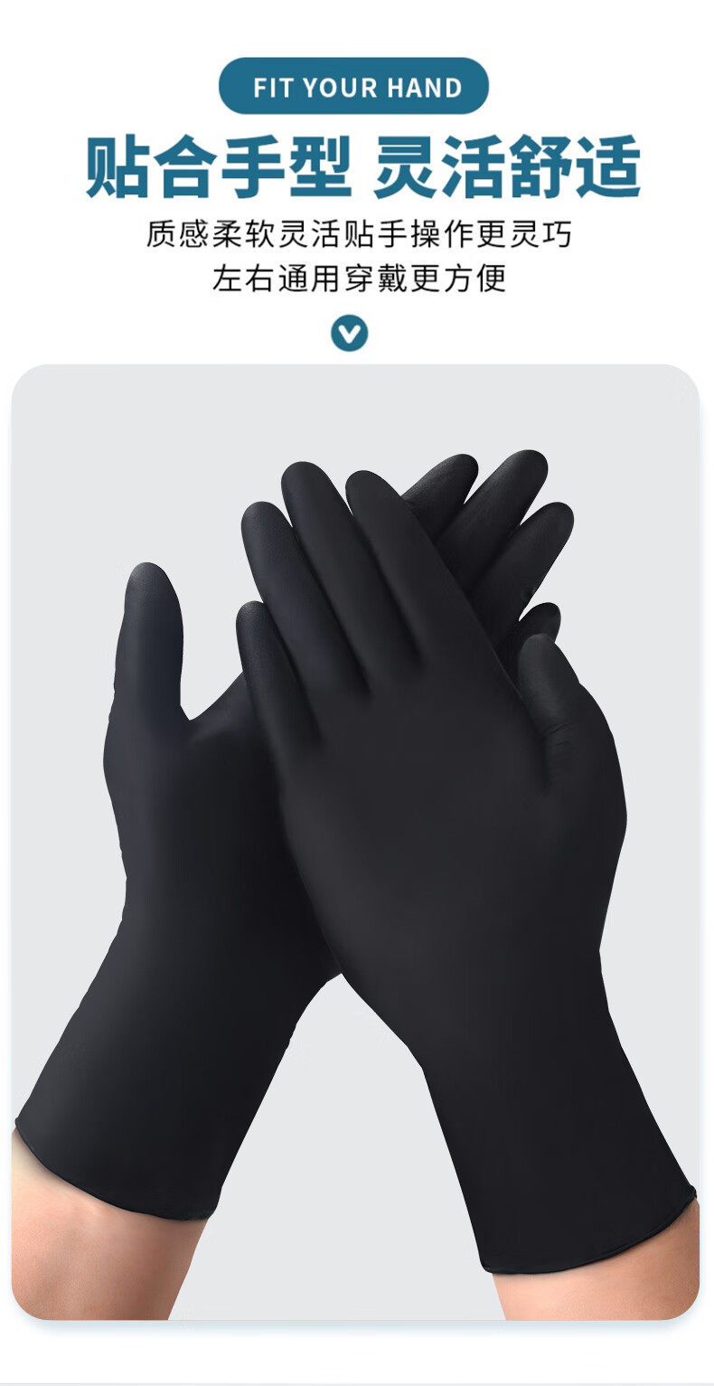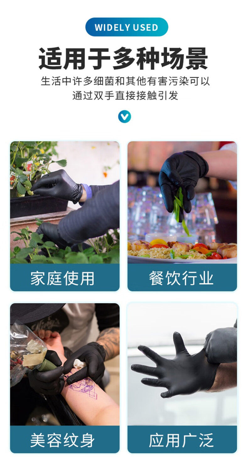 Yingke Disposable Nitrile Gloves Black Thickeneded Durable Food Grade Special Baking Non-Slip Nitrile Nitrile Gloves