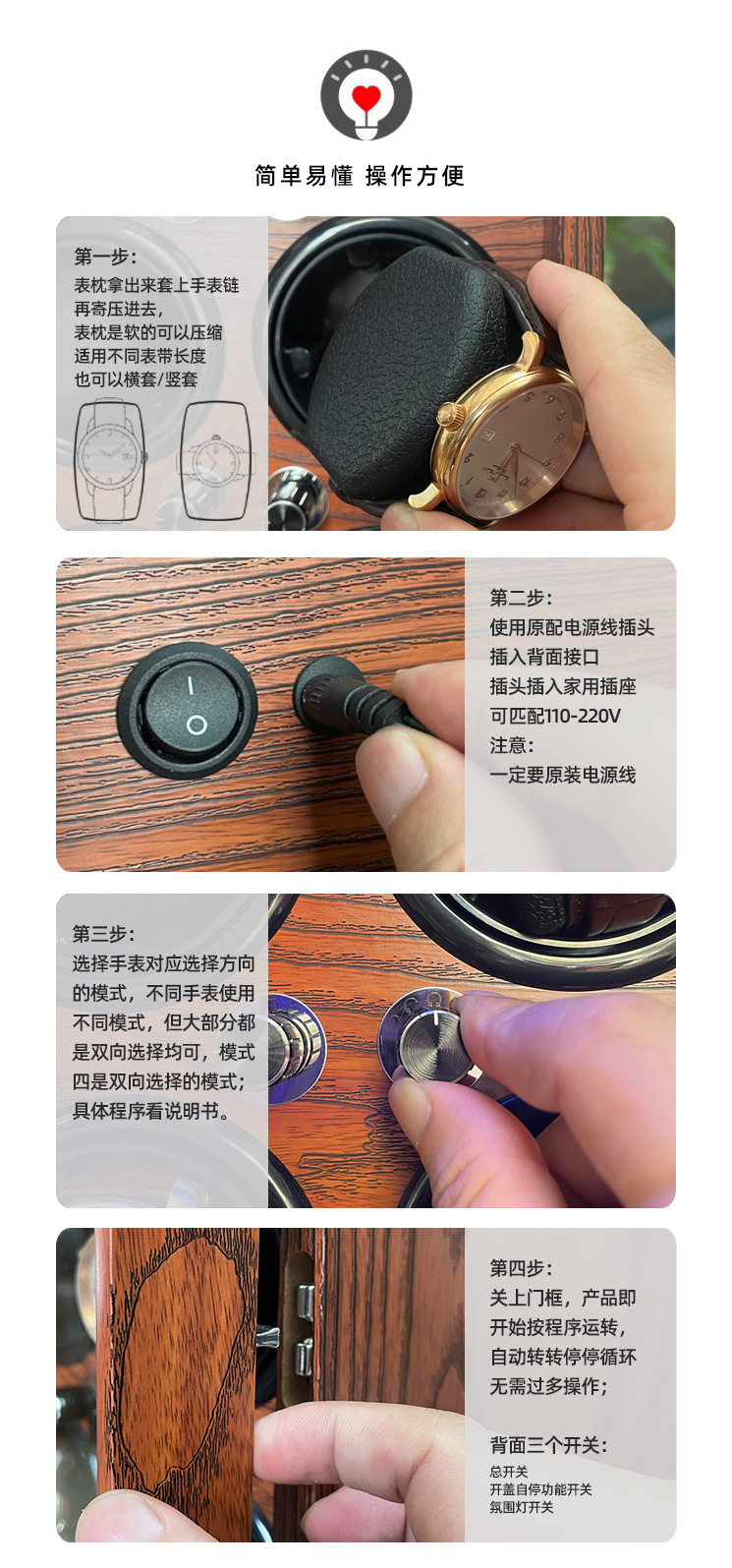 Watch Shaker Mechanical Watch Household Self-Pendulum Rotator Automatic Watch Swing Rotator Rotating Watch Box Chain Storage Box