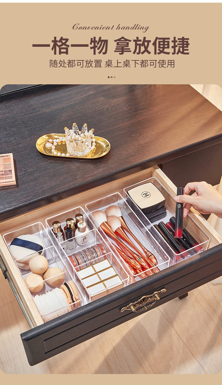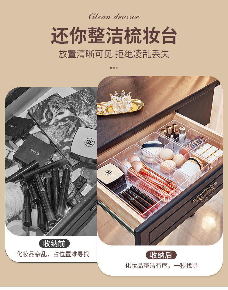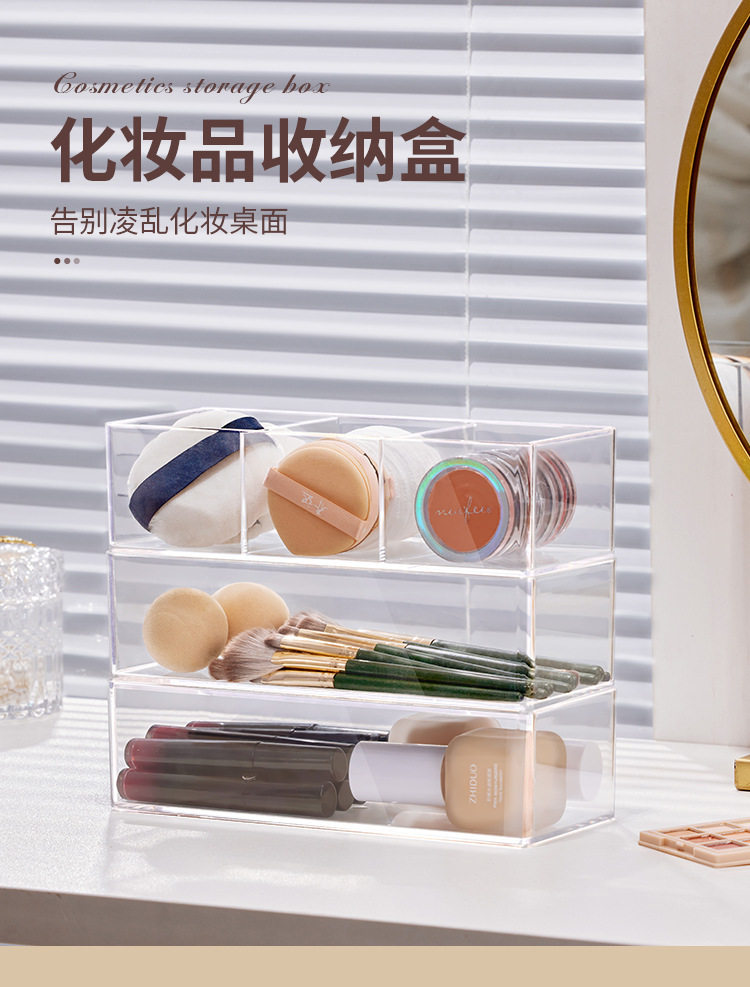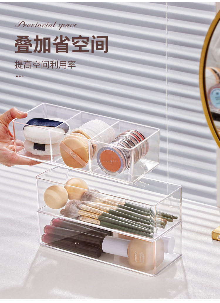 Cross-border Desktop Transparent Acrylic Cosmetic Storage Box Cosmetic Cotton Storage Stackable Dust-proof Drawer Storage Box